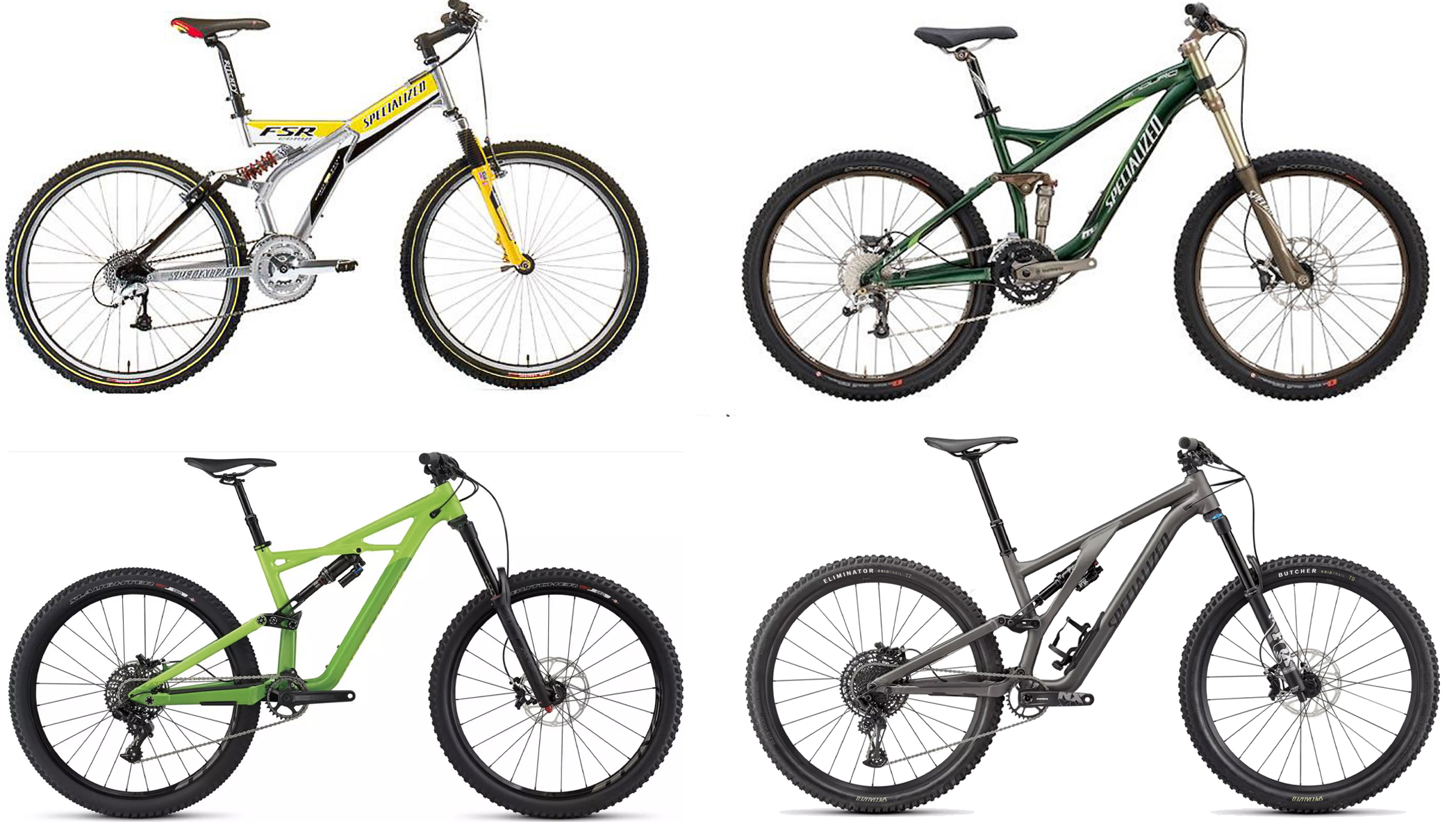 Le premier exemple, c’était le Specialized Enduro. Le nom est apparu pour la première fois chez la marque américaine en 1999 avec le modèle FSR Enduro Comp, en 80 mm de débattement (contre 63 mm pour la version XC). Equipé de freins V-Brakes, il coûtait alors aux alentours de 12 000 FF soit un peu plus de 1800 €. Avec l’inflation, cela correspond désormais à près de 2700 €.