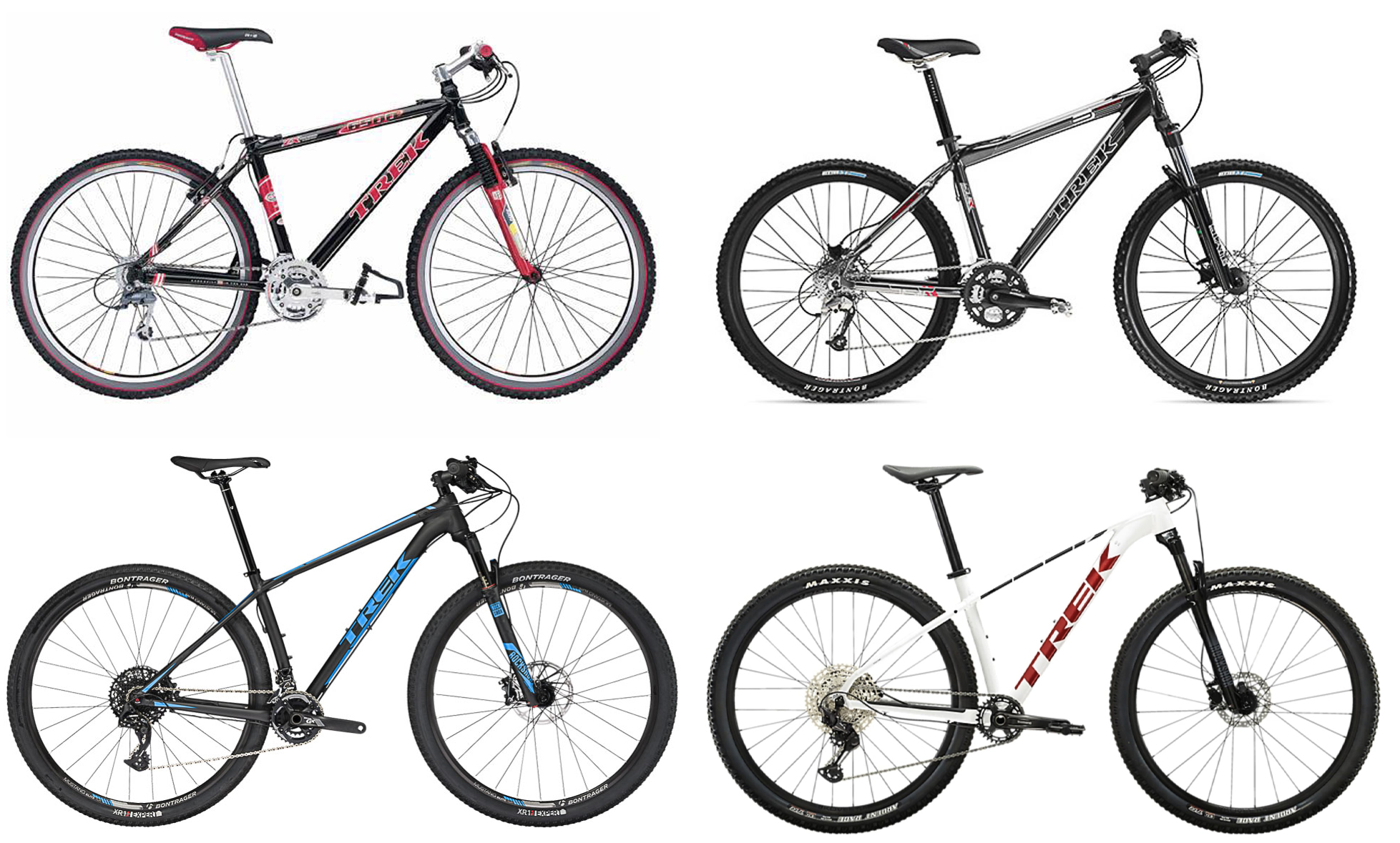 - 1997 – Trek 6500 (cadre alu 6000, fourche RockShox Indy C, transmission Shimano STX-RC/LX, freins V-Brakes Dia Compe) : 1065 €