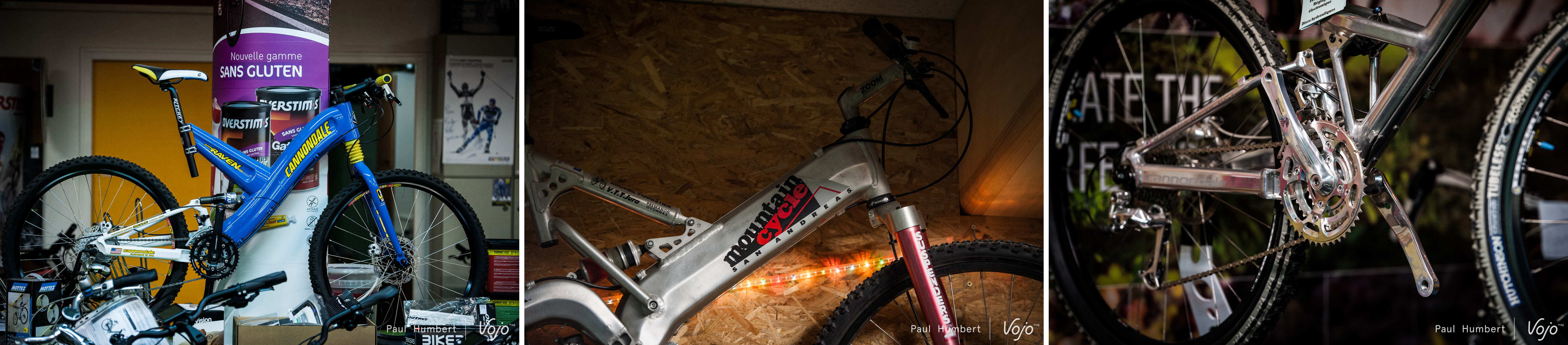 - 1997 – Cannondale Raven 2000 SL (cadre carbone/alu, fourche Headshock P-Bone D, transmission Shimano XT, freins V-Brakes Shimano XT) : 3500 €