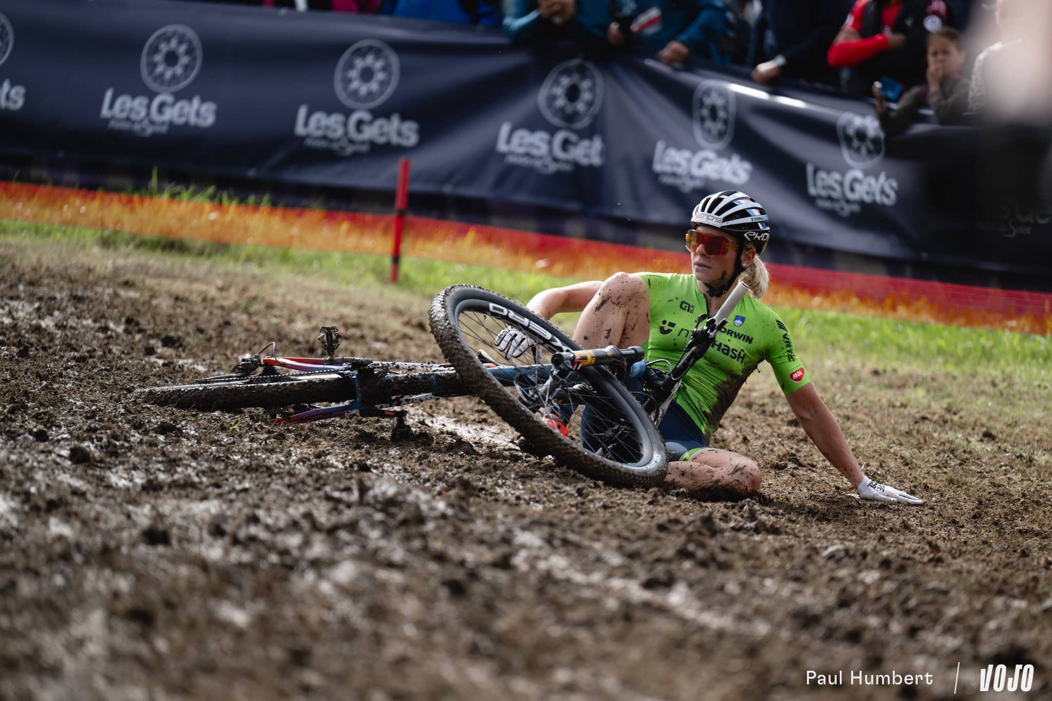 Après les pluies du samedi, qui ont transformé la piste de DH en véritable patinoire, le circuit de XC apparaissait bien gras et boueux dimanche matin. Les passages successifs des athlètes l’ont séché peu à peu, offrant aux courses de l’après-midi (Elites Hommes et surtout U23 Hommes) des conditions presque sèches sur les principales trajectoires, mais les femmes n’ont pas eu cette chance.