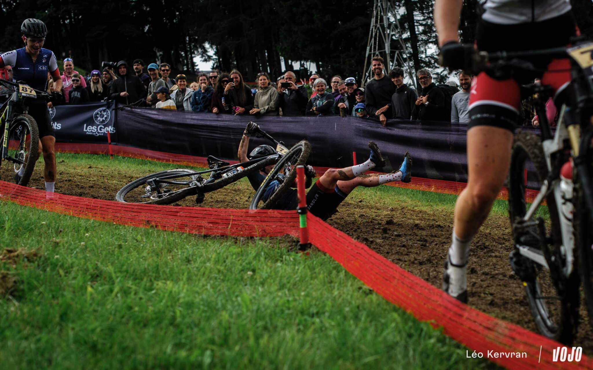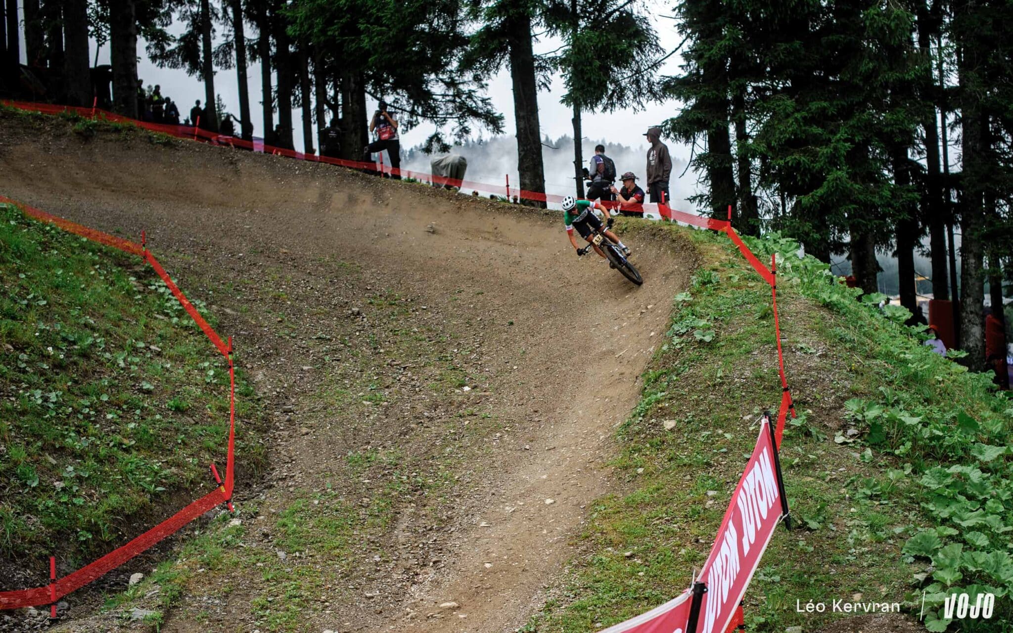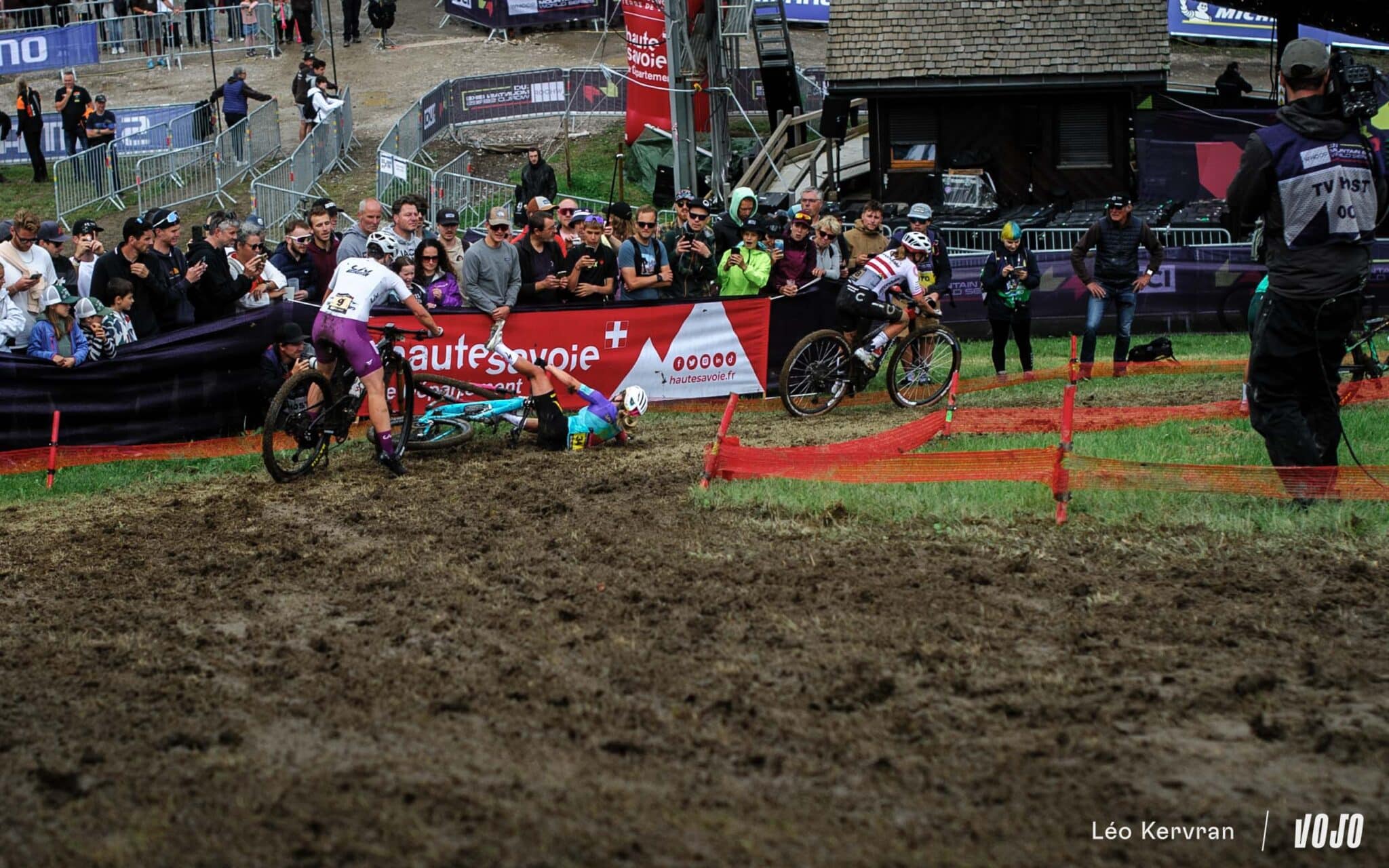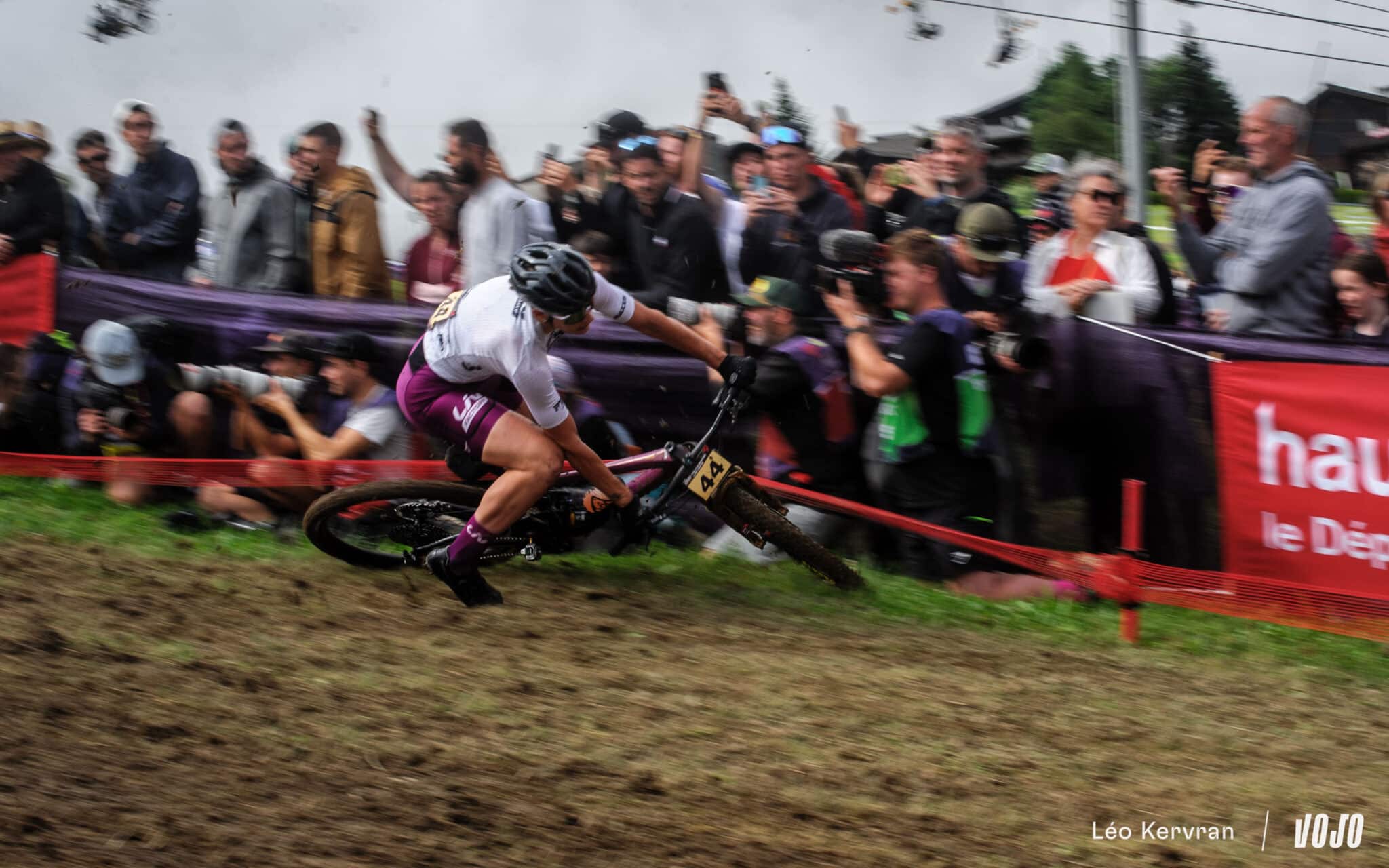 Après les pluies du samedi, qui ont transformé la piste de DH en véritable patinoire, le circuit de XC apparaissait bien gras et boueux dimanche matin. Les passages successifs des athlètes l’ont séché peu à peu, offrant aux courses de l’après-midi (Elites Hommes et surtout U23 Hommes) des conditions presque sèches sur les principales trajectoires, mais les femmes n’ont pas eu cette chance.