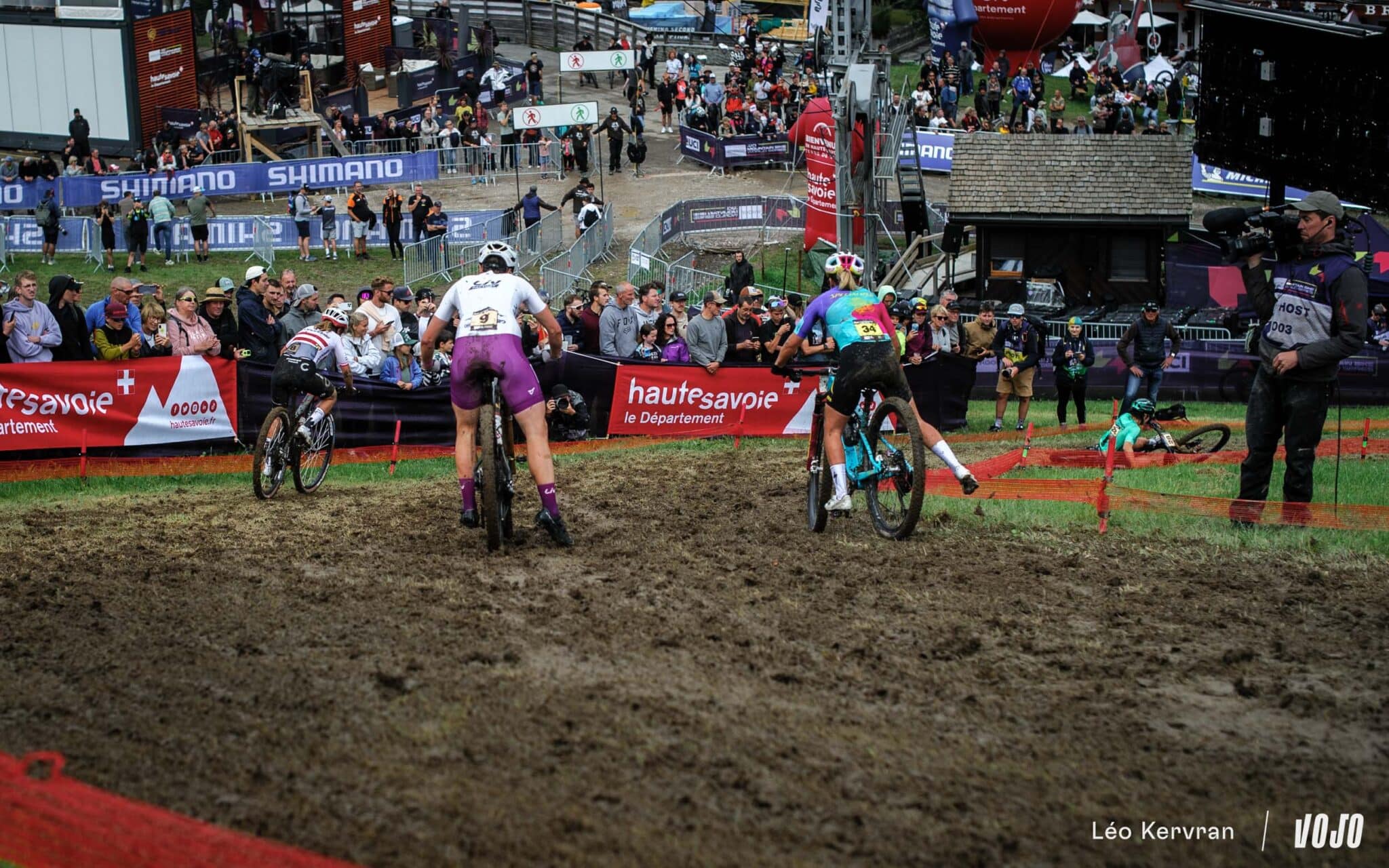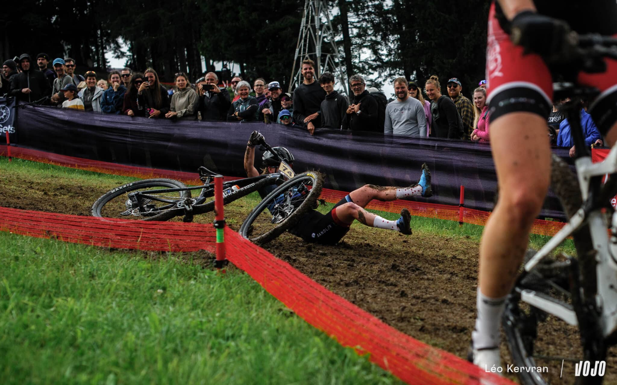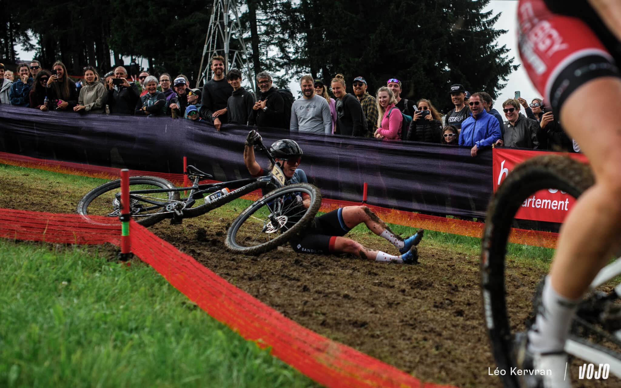 Après les pluies du samedi, qui ont transformé la piste de DH en véritable patinoire, le circuit de XC apparaissait bien gras et boueux dimanche matin. Les passages successifs des athlètes l’ont séché peu à peu, offrant aux courses de l’après-midi (Elites Hommes et surtout U23 Hommes) des conditions presque sèches sur les principales trajectoires, mais les femmes n’ont pas eu cette chance.