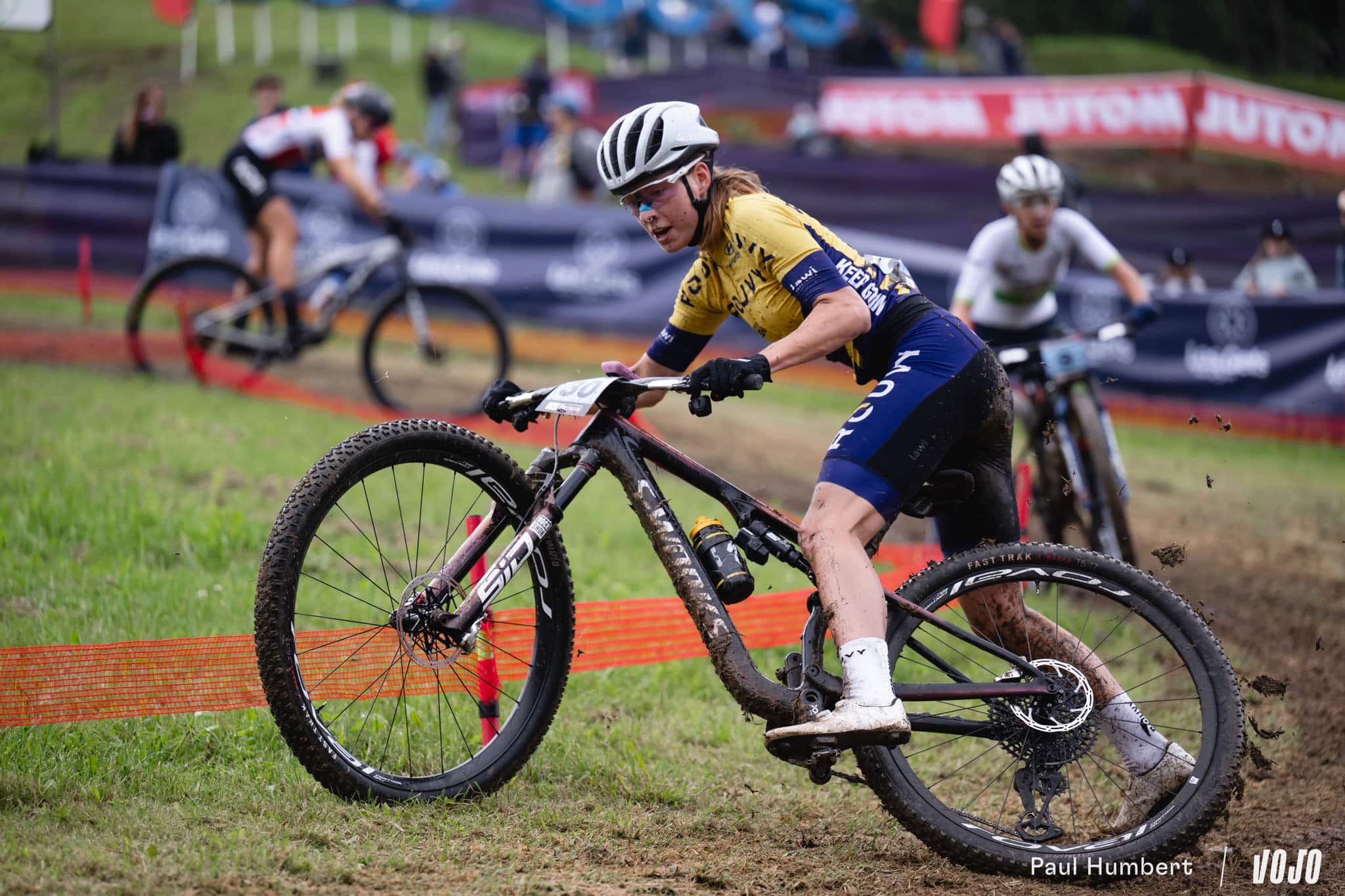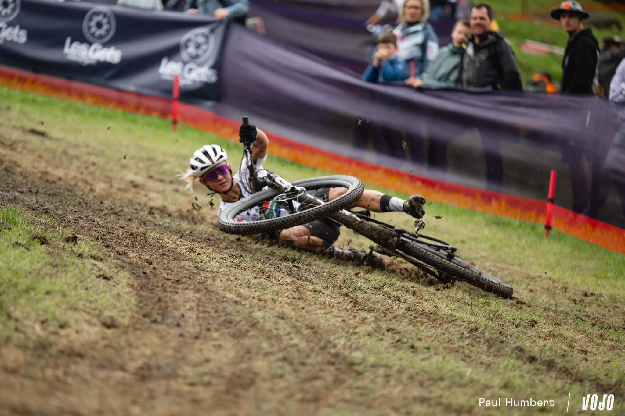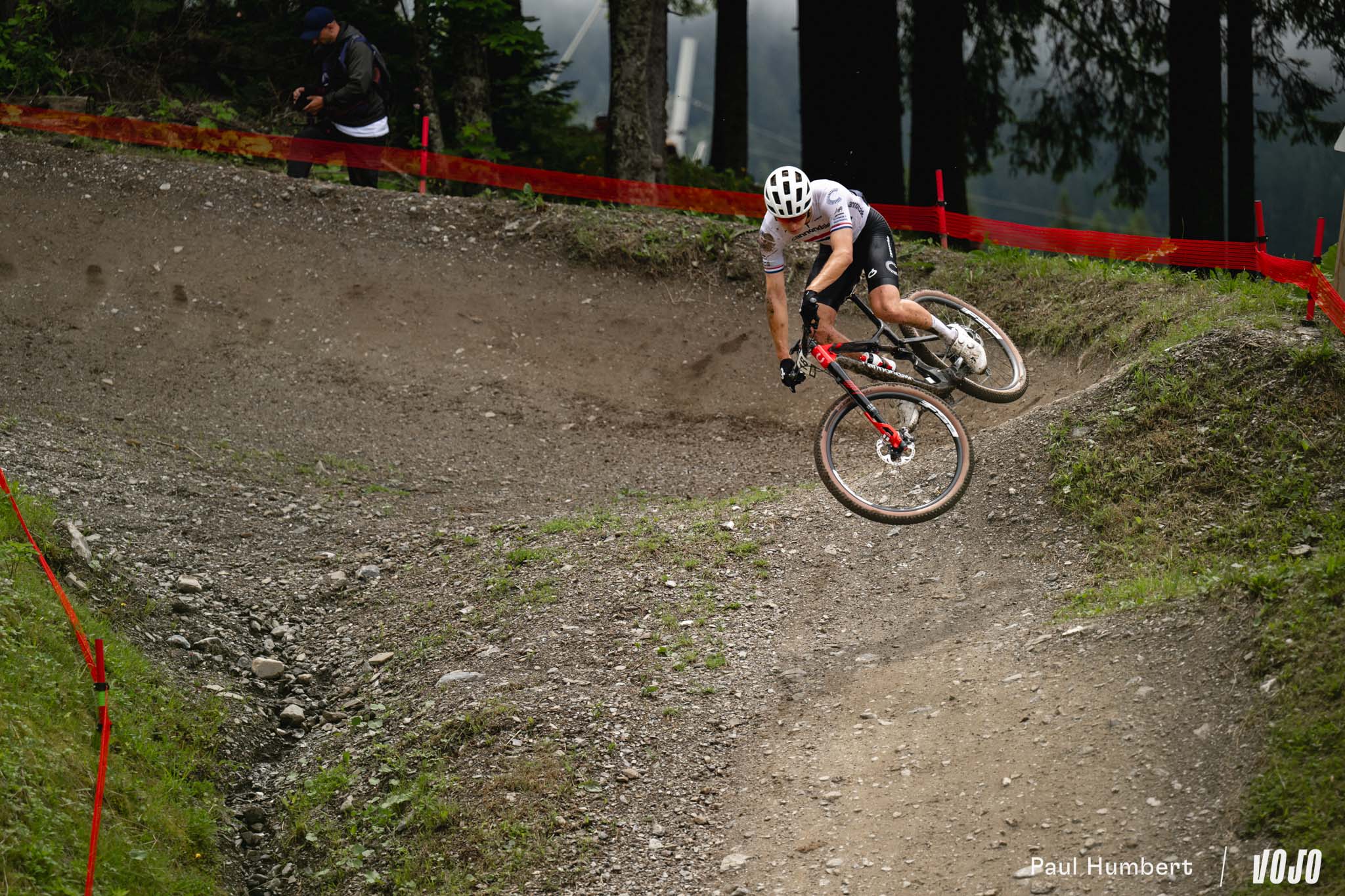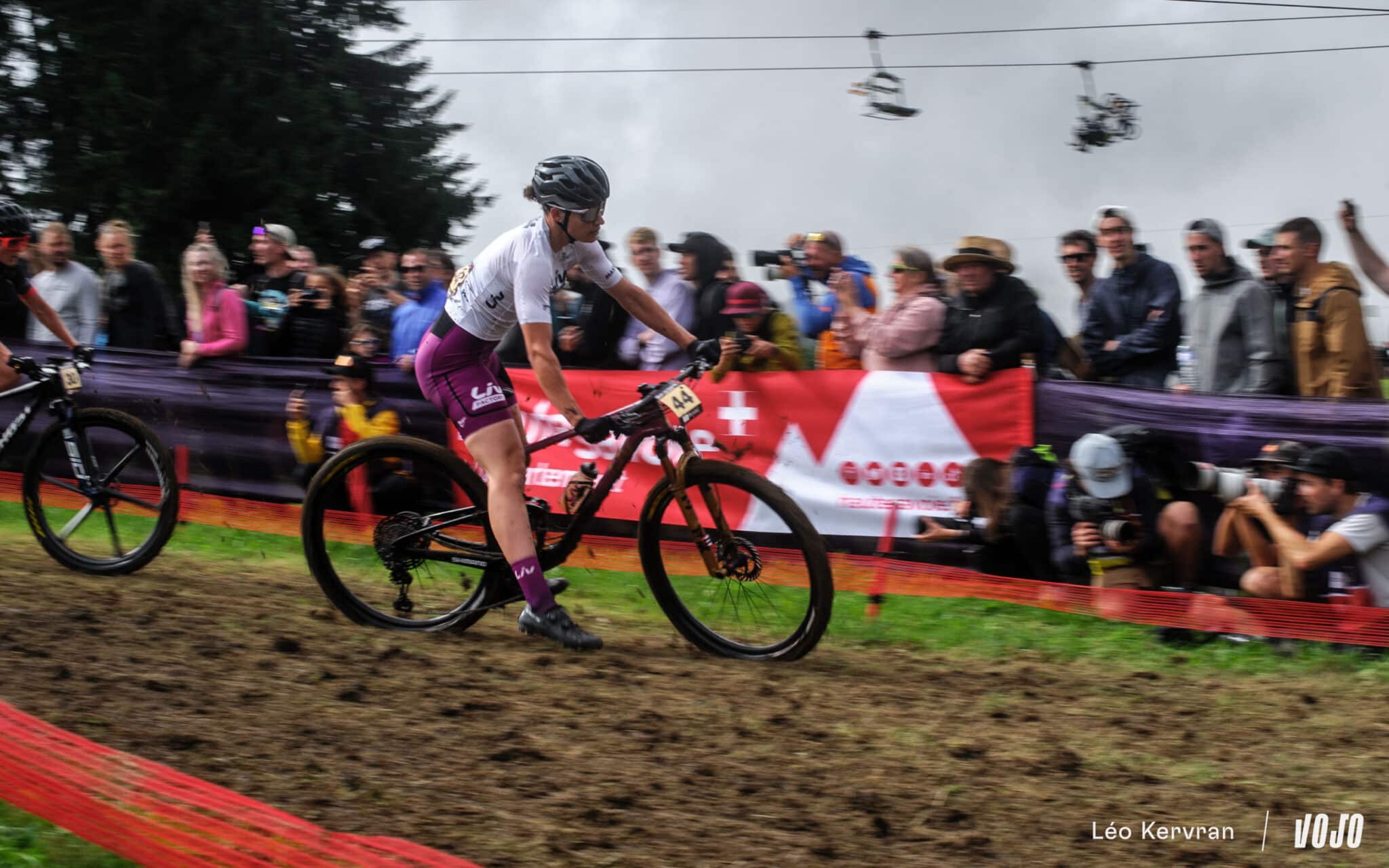 Après les pluies du samedi, qui ont transformé la piste de DH en véritable patinoire, le circuit de XC apparaissait bien gras et boueux dimanche matin. Les passages successifs des athlètes l’ont séché peu à peu, offrant aux courses de l’après-midi (Elites Hommes et surtout U23 Hommes) des conditions presque sèches sur les principales trajectoires, mais les femmes n’ont pas eu cette chance.