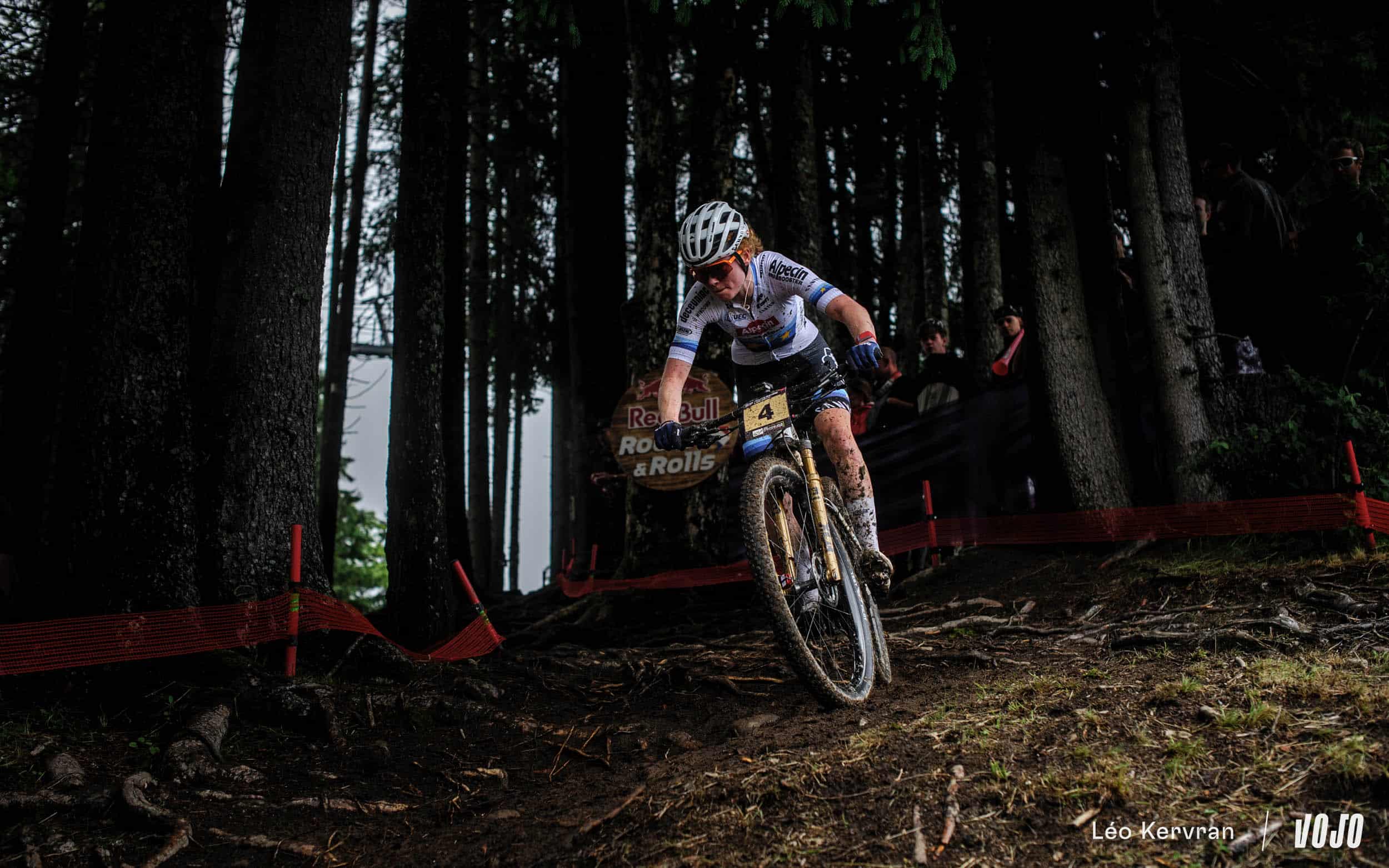 Que ce soit les Espoirs à 9h ou les Elites à 11h, elles ont dû faire face à un terrain extrêmement piégeux, aussi bien sur les racines qui sont partout dans les sous-bois que dans les grands dévers en herbe qu’on trouve à plusieurs endroits du circuit. Certaines ont pu s’illustrer avec leur sens des trajectoires et leur aisance dans ces conditions (on pense notamment à Alessandra Keller et surtout Jenny Rissveds, impressionnante de facilité) mais pour toutes les autres, il s’agissait plus de survivre ou de limiter la casse qu’autre chose…