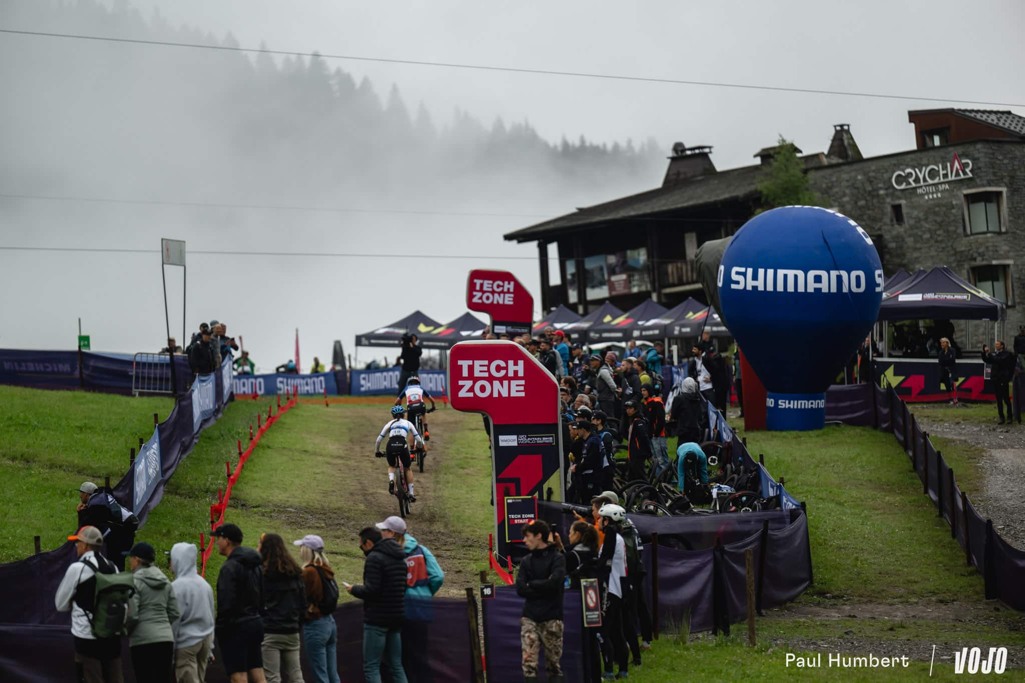 Malgré une météo plutôt fraîche (mais on a vu avec la descente que même la pluie ne semblait pas poser de problème), le public était bien présent aux Gets.