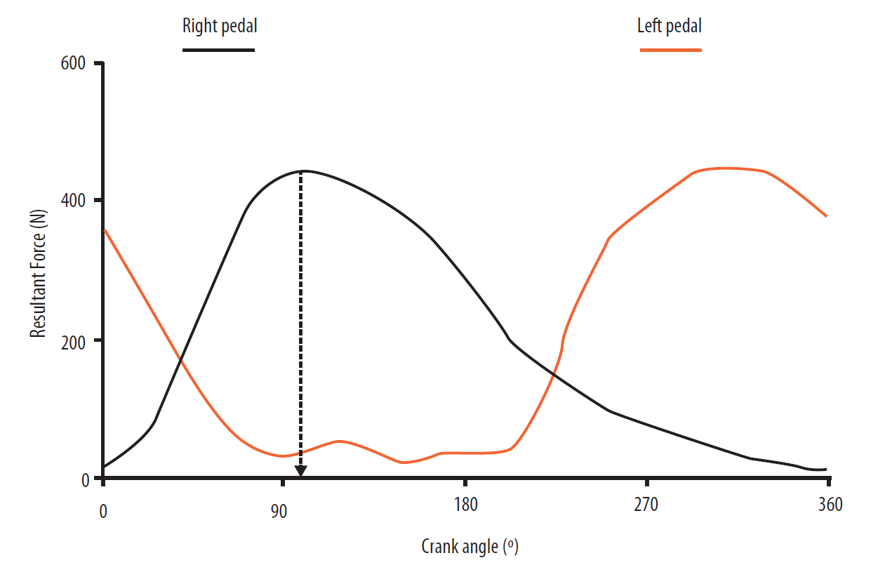 Toujours d’un point de vue mécanique, on peut aussi se poser des questions sur l’effet de ces plateaux sur l’efficacité du pédalage, c’est-à-dire la direction de la force appliquée par le pilote. Pour être optimale, elle doit être perpendiculaire à la manivelle et on la caractérise avec l’indice d’efficacité du pédalage (IEP), en pourcentage. Des études ont démontré que l’IEP est maximal lorsque les manivelles sont à l’horizontale, soit précisément la zone où on passe plus de temps avec un plateau non-circulaire.