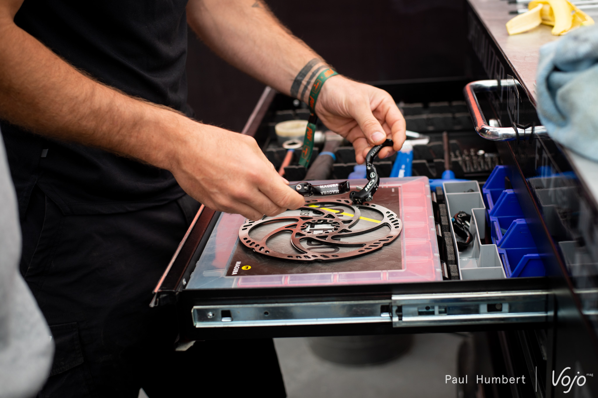 Direction les Crankworx et le paddock de descente pour retrouver Loïc Bruni et l’équipe Specialized Gravity. Sous la tente, nous rencontrons également le staff Magura qui aiguille notre objectif vers les leviers de freins du champion du Monde. Sur des MT7, Loïc Bruni et son mécano Jack Roure ont conçu un levier en phase avec les exigences du pilote. Récit d’un développement qui pourrait paraître anodin, mais il n’en est rien.