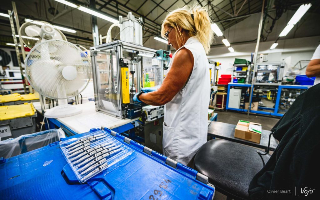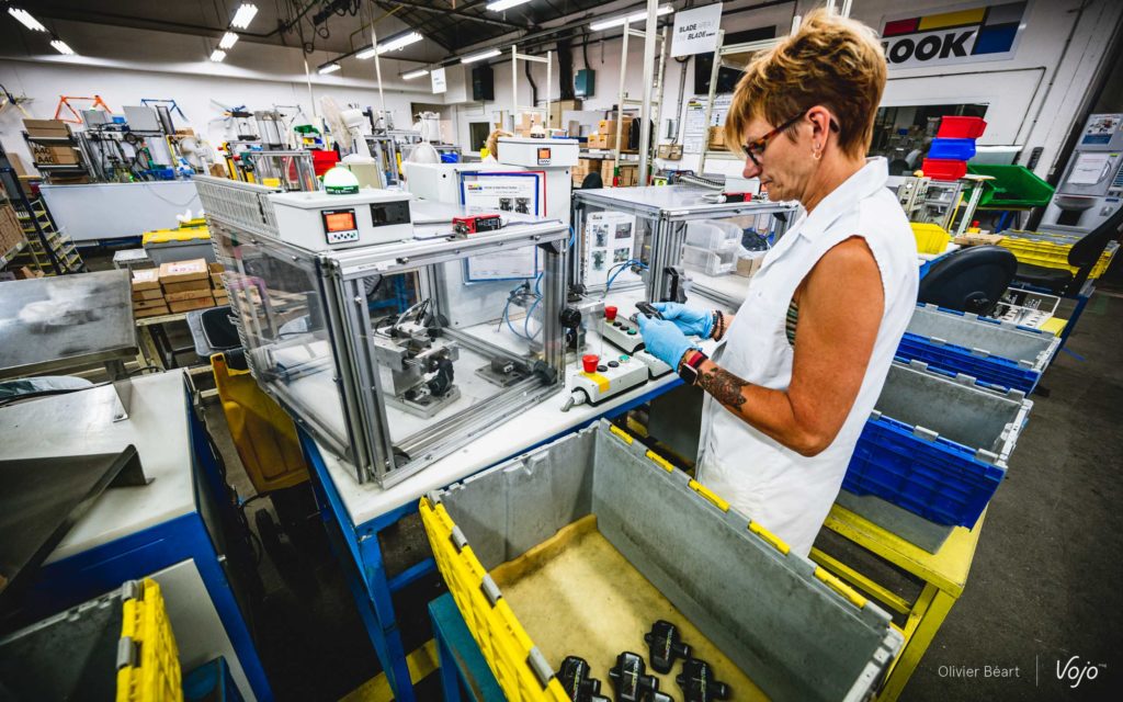 L’assemblage est confié aux mains d’opératrices expérimentées, dont Martine, qui a plus de 20 ans de maison et qui termine d’emballer une partie de sa production du jour quand nous la rejoignons.