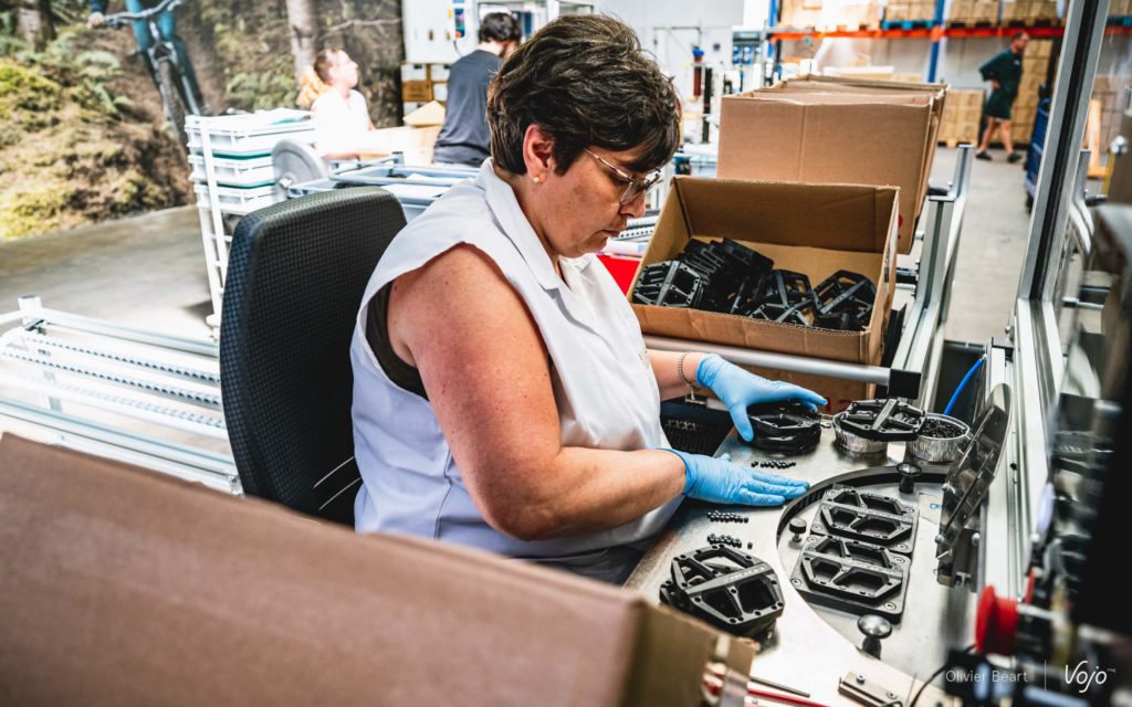 Que ce soit pour le haut de gamme ou pour les pédales plus accessibles, Look met un point d’honneur non seulement à développer ses propres produits, mais aussi à les produire dans un écosystème le plus local possible et à garder la maîtrise sur la plupart des étapes. En tout, jusqu’à 5000 paires de pédales peuvent sortir chaque jour de ces ateliers. « C’est un choix qui pouvait sembler original, voire bizarre, il y a quelques années, mais le contexte actuel nous donne raison. Alors que beaucoup rencontrent des soucis d’approvisionnement et souffrent des coûts de transport, nous parvenons à tirer notre épingle du jeu grâce à notre assemblage à Nevers et à la présence d’un grand nombre de nos fournisseurs dans un rayon finalement assez limité autour de l’entreprise. »