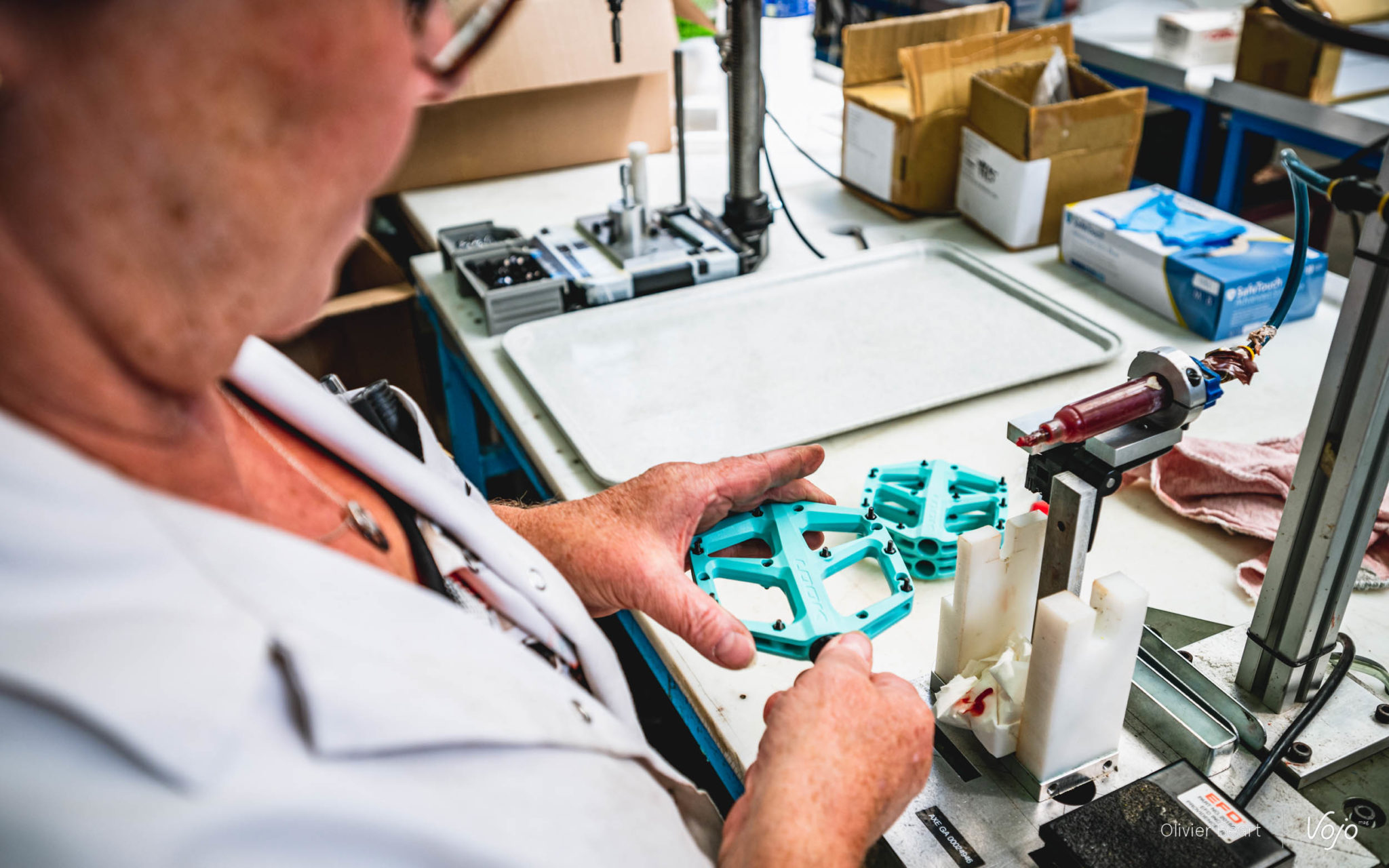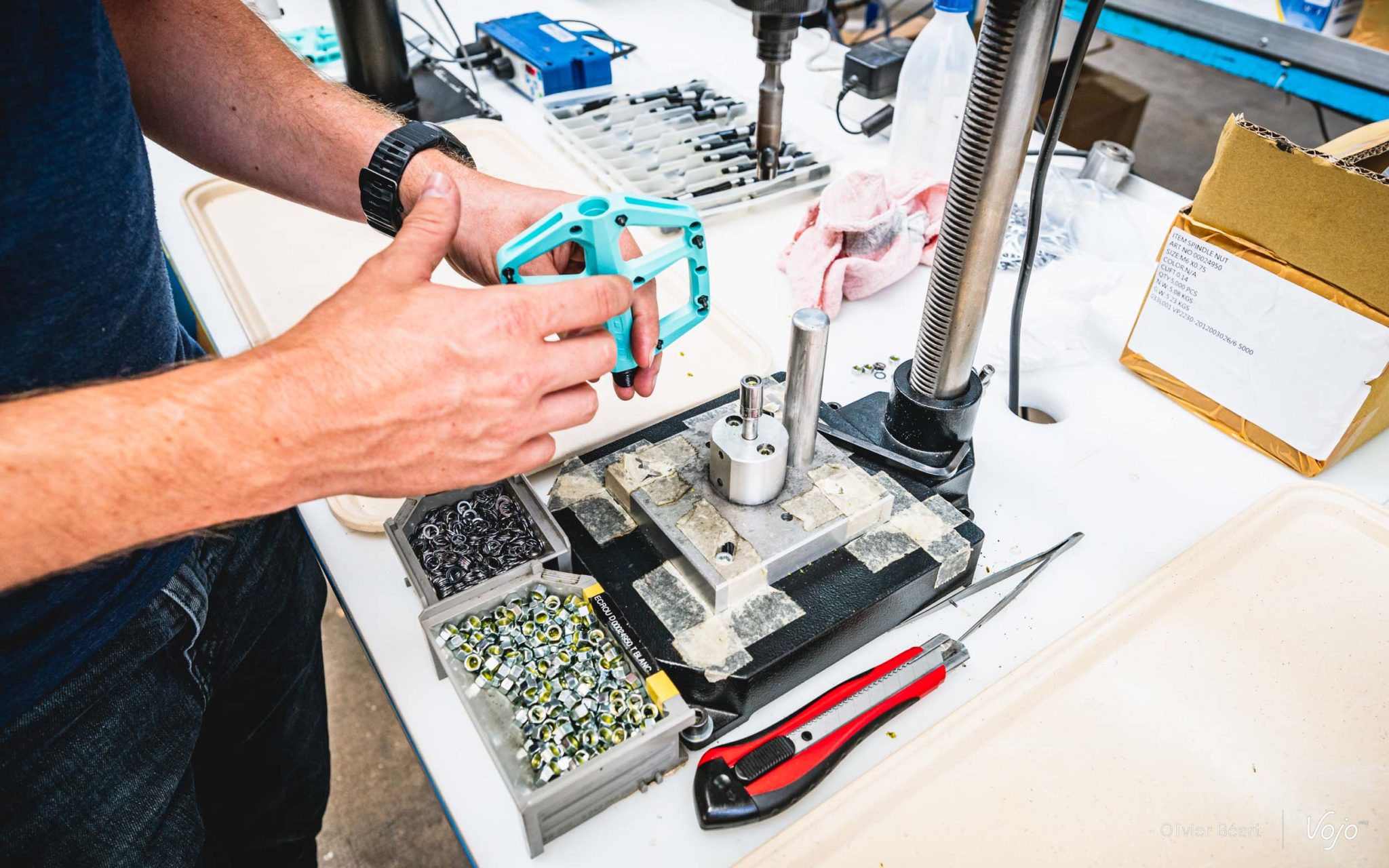 Une fois les présentations faites, toute l’équipe me regarde avec un petit sourire : « Si tu veux repartir avec une paire de pédales pour les tester, il va falloir les produire toi-même ! » Allez, d’accord, challenge accepté.