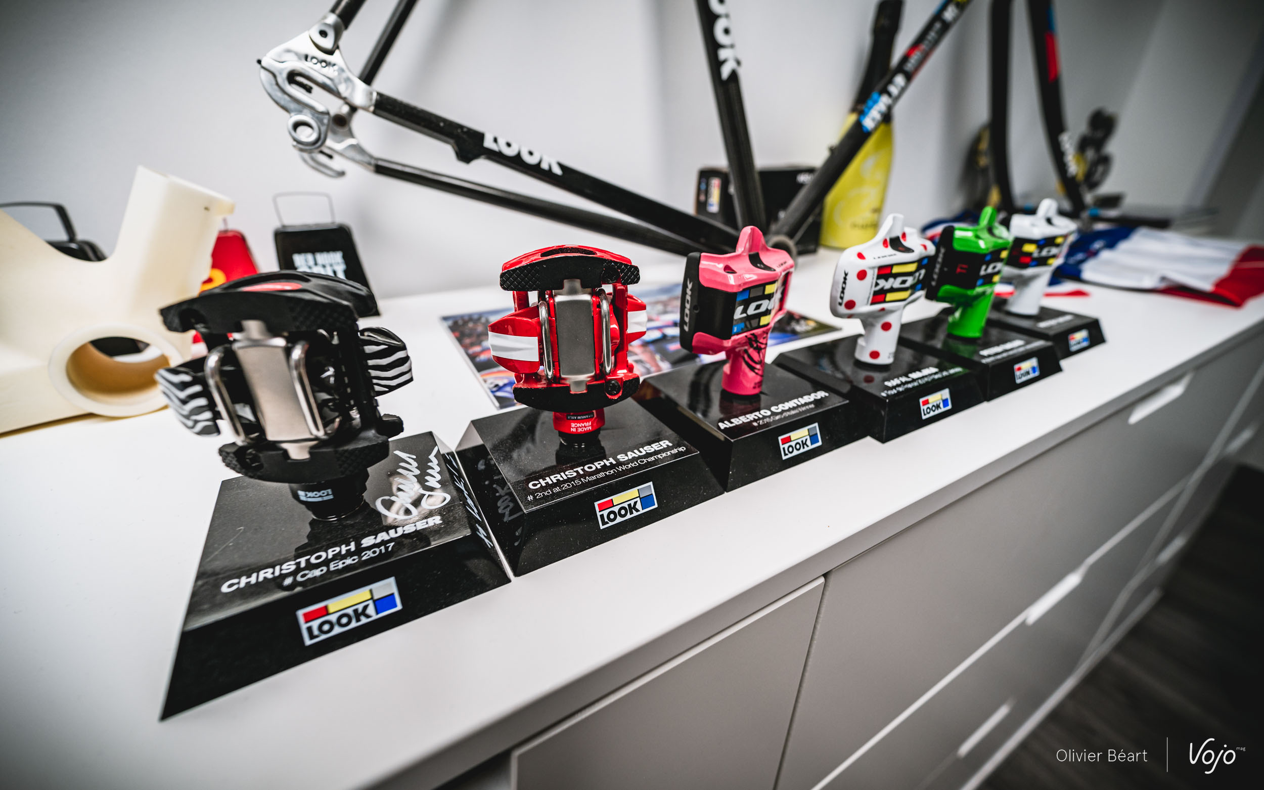 Aujourd’hui, Look, ce sont toujours des pédales, mais aussi des cadres. Si ces derniers sont toujours développés à Nevers, ils sont principalement fabriqués en Tunisie, dans une usine propre à Look (sauf certains cadres de piste bien spécifiques), pour les pédales, il s’agit toujours bien d’une aventure bleu-blanc-rouge !