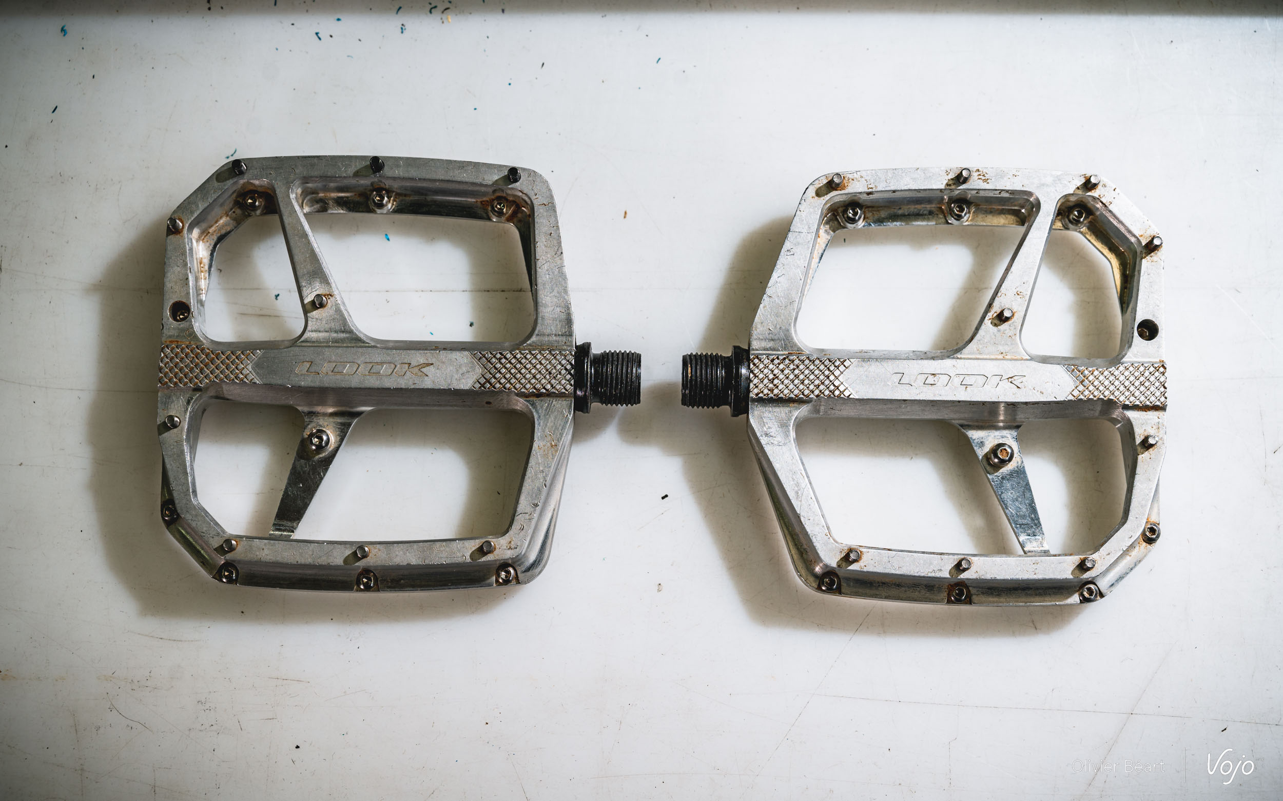 Au-delà des aspects techniques, le gros du travail sur le terrain et de la mise au point se sont concentrés sur la recherche de la forme optimale de la pédale. Différents corps ont été testés, avec des angles différents aux extrémités notamment. Ainsi que différents positionnements et hauteurs de picots. Des différences subtiles, mais bien perceptibles sur le terrain. Et entre toutes les solutions testées, il a fallu faire des arbitrages !