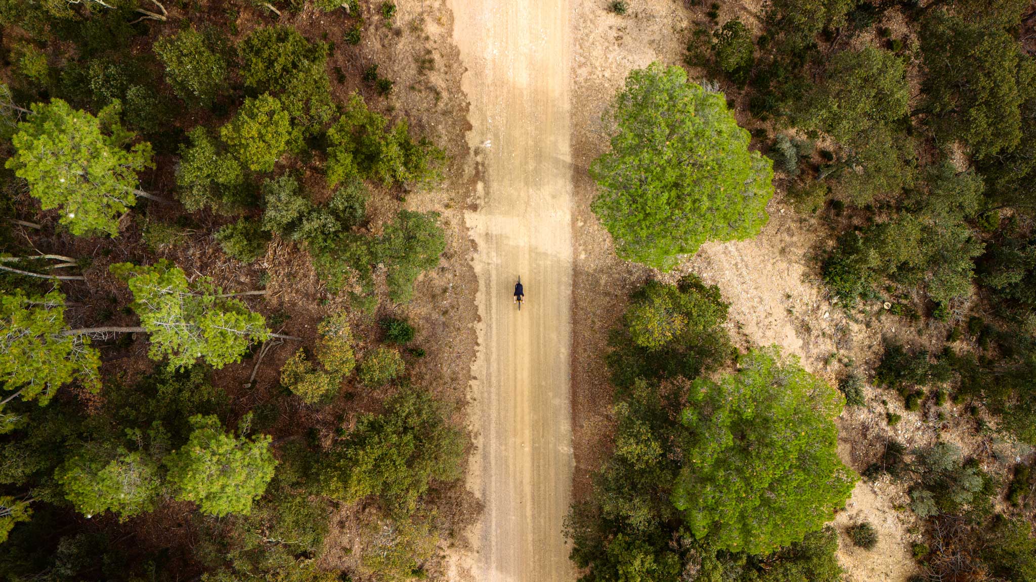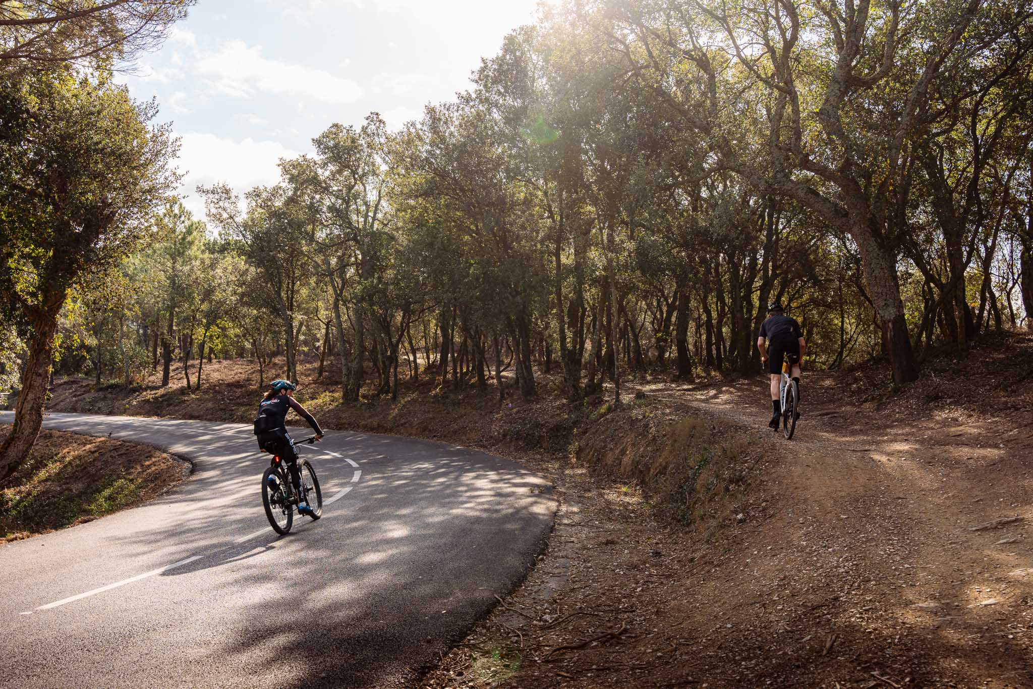 On s’échappe très vite du centre-ville et on accède vite à de grandes pistes à travers champs, ou des itinéraires plus vallonnées dans les massifs qui jouxtent le ville. Un des points névralgiques des pratiques routes et gravel, c’est le col d’Els Angels où de grandes pistes et une superbe route se croisent, avant de redescendre sur des petits villages iconiques de la région.
