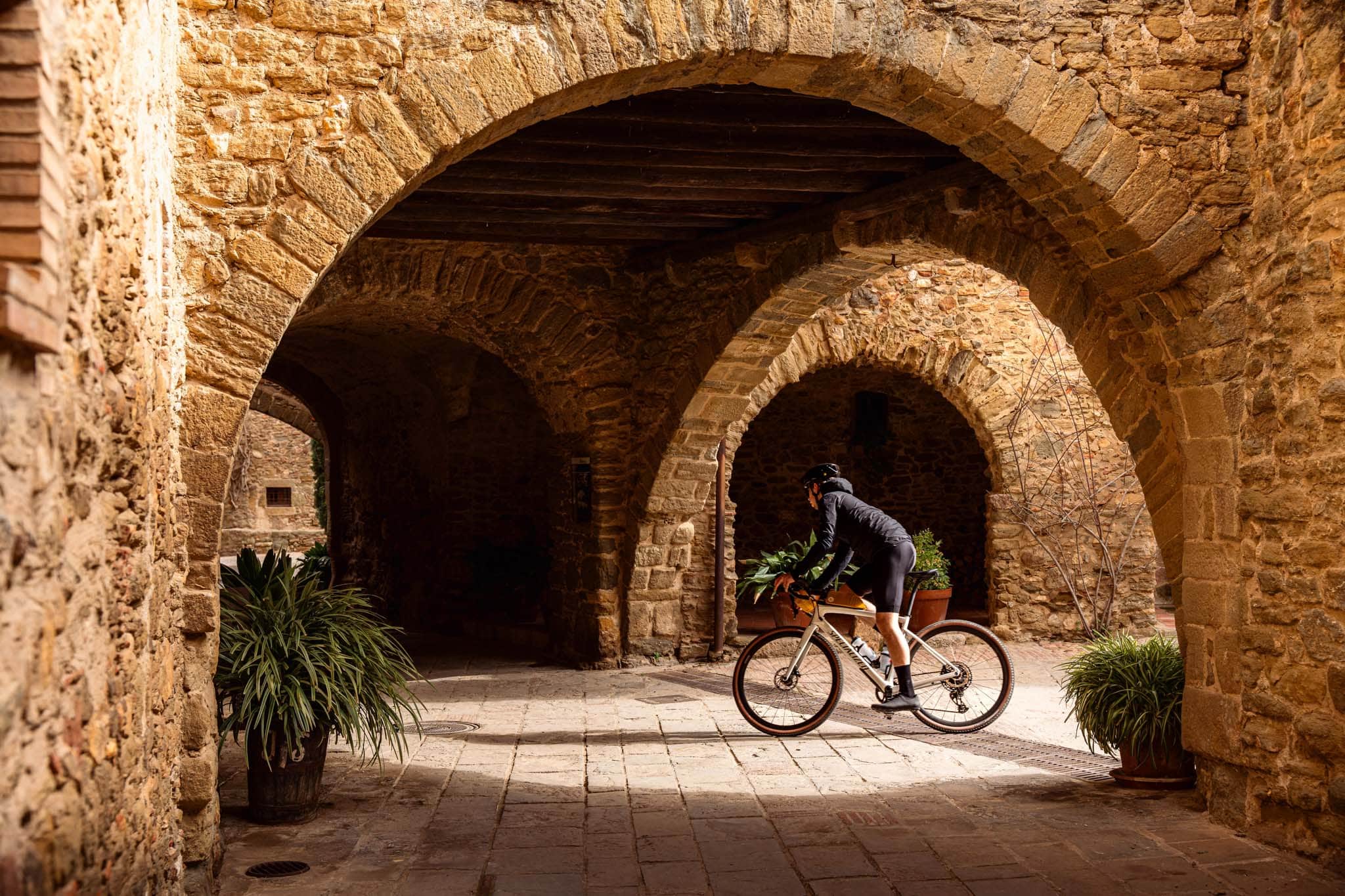La cité catalane combine un coeur historique charmant et une culture cyclable très développée, à la faveur de l’installation d’anciens professionnels sur route dans de nombreux commerces : cafés, restaurants, hébergements,… La gare est très facilement accessible depuis la France, et dès les premiers mètres, on comprend qu’on ne nous a pas menti sur la marchandise : la ville regorge de beaux magasins, de cafés cyclistes et on croise des vélos partout dans les rues. On est un peu comme à Finale Ligure, sauf que les chaussures et les chaussettes blanches ont remplacé les casques intégraux.