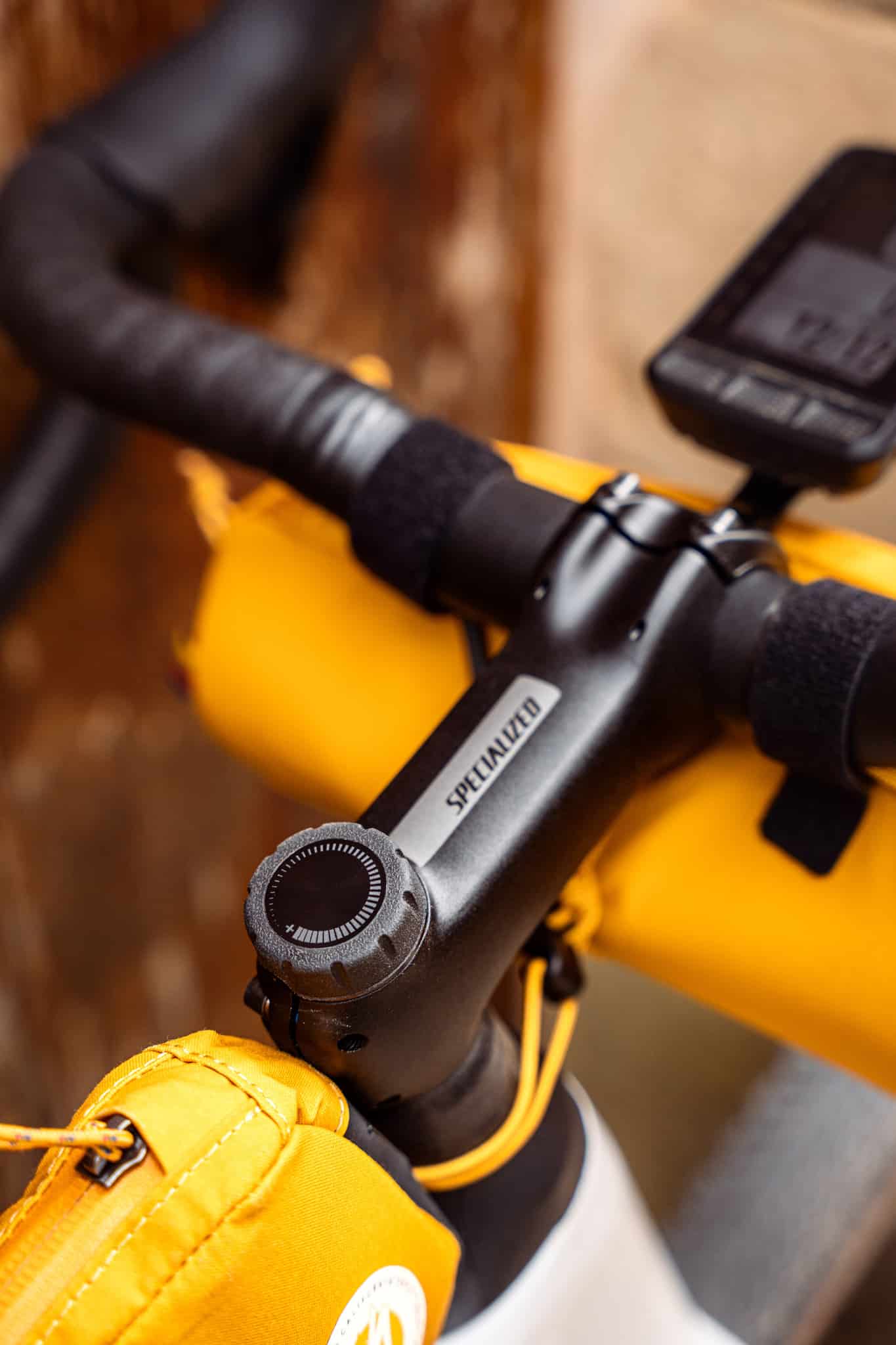 Petit détail qui pourrait paraître insignifiant, mais sur les gravel, j’aime les petites pochettes sur le tube supérieur, qui permettent de délester un peu les poches de maillots ou des vestes et d’accéder facilement à une barre énergétique salutaire.