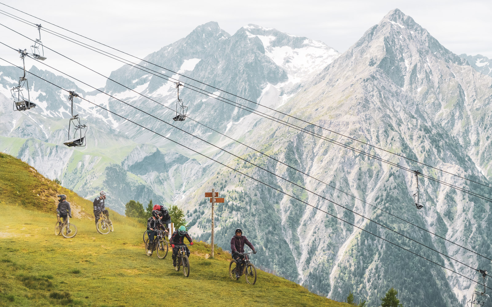 Notre reconnaissance s’arrête dans le village des Deux Alpes. Le dernier tronçon de la course consiste en un sentier pédestre qui descend dans la vallée jusqu’au village de Venosc. L’exploration à vélo est interdite ici car ce chemin ne peut être utilisé que pendant la course. On peut y aller à pied, mais nous garderons cette « promenade » pour demain après la qualification.