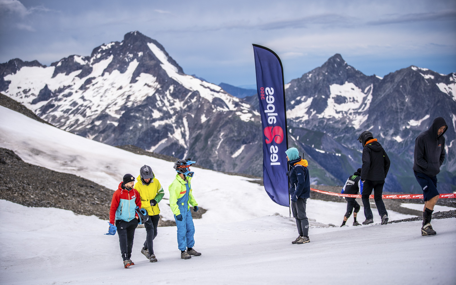 La solidarité règne en maître parmi les participants. Pendant la course, c’est chacun pour soi, mais pendant la préparation, l’esprit est complètement différent. Jeffry, qui est arrivé plus tôt, me guide avec d’autres participants. Bientôt nous serons dans la même « misère » et cela fait de nous des amis. Nous prenons les remontées jusqu’à 3200 mètres d’altitude, où le sommet du glacier nous domine. Là où nous voyons des skieurs descendre, la vue sera complètement différente dans deux jours, avec des centaines de vététistes qui tenteront de conquérir le glacier. Mais pas aujourd’hui, je me dis.