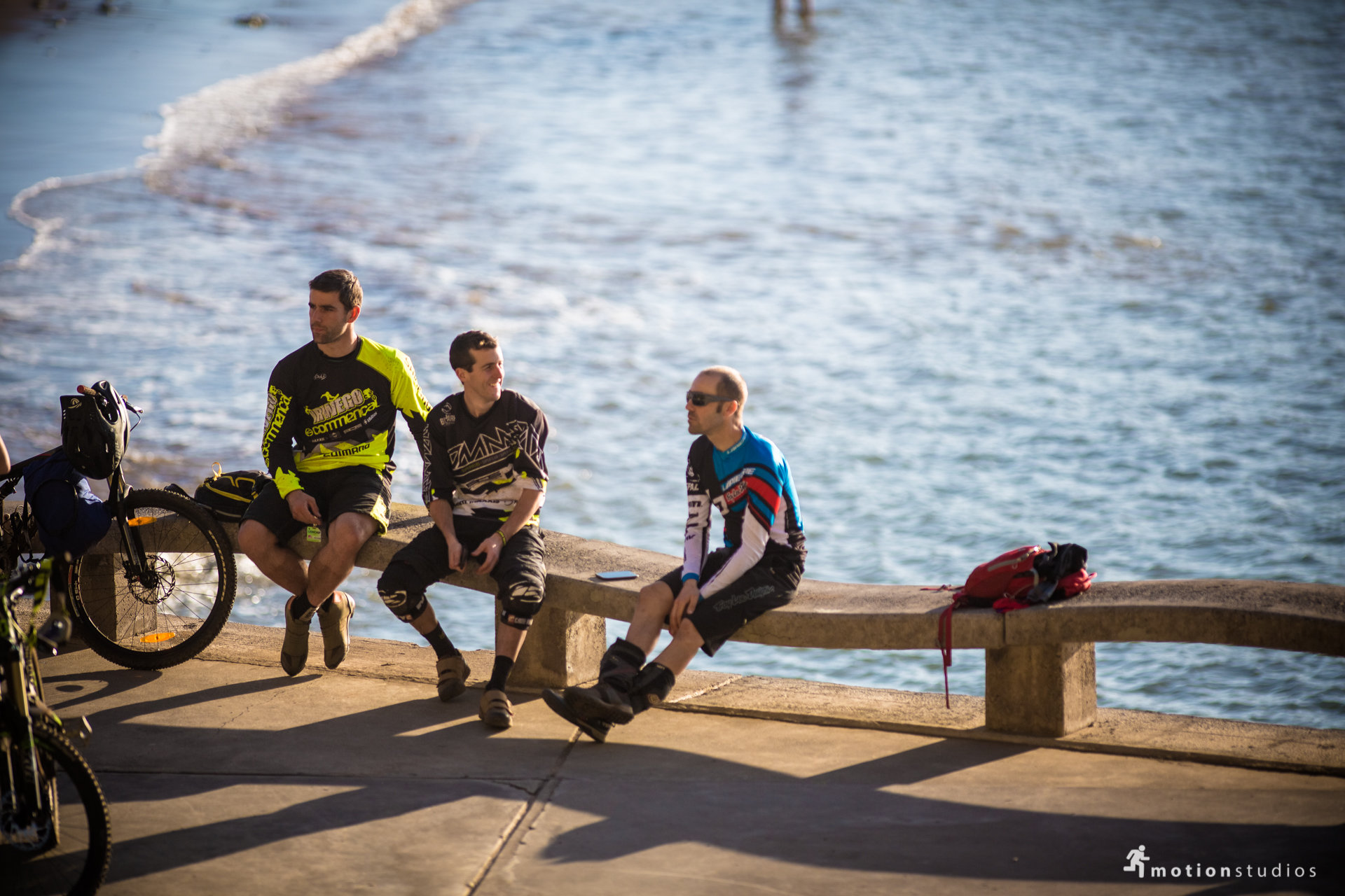 La « French Connection » se détend au bord de la plage de Calheta après une belle première journée : Jérémy Arnould, Nicolas Quéré, Nicolas Vouilloz.