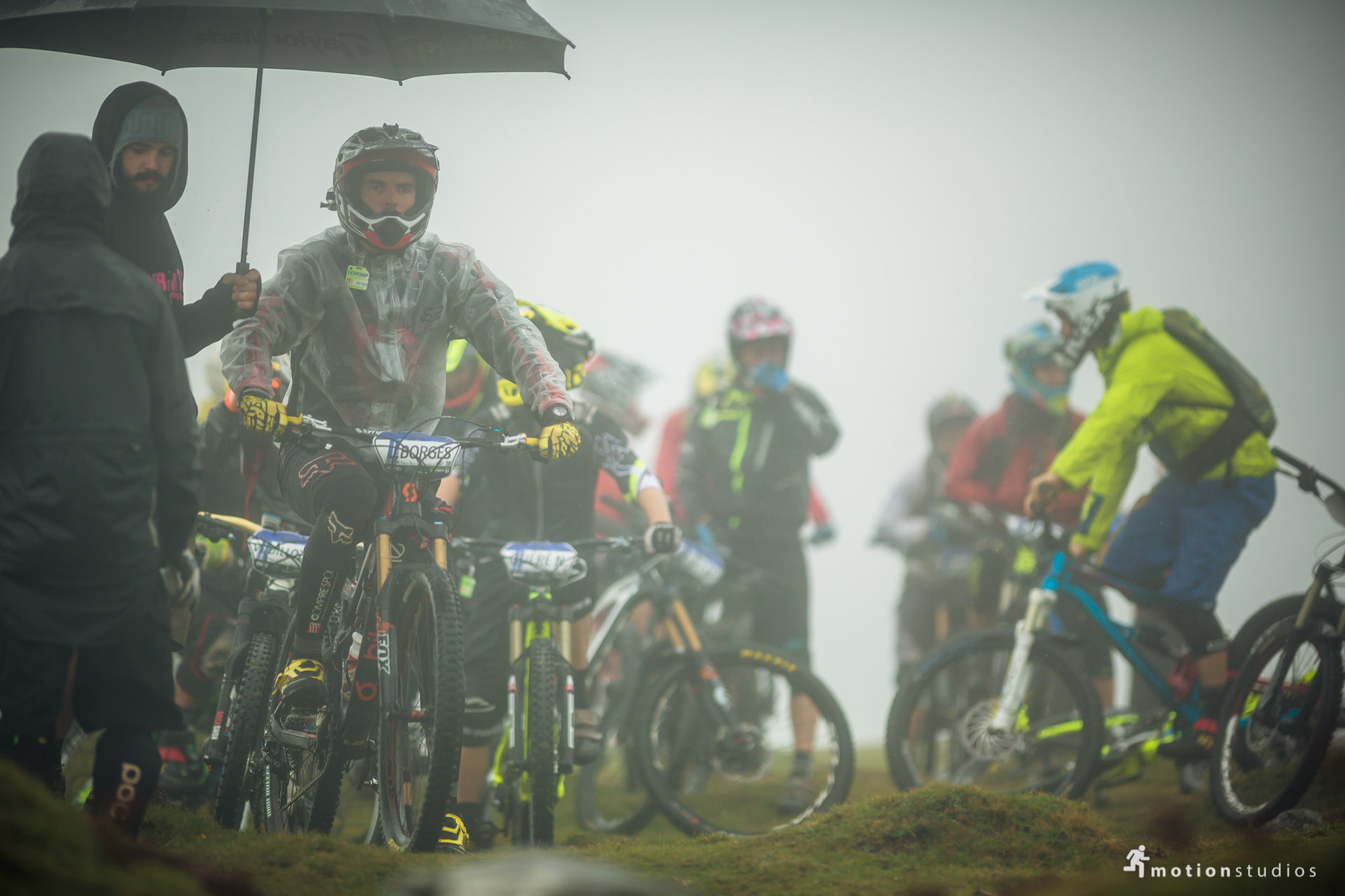 Le dimanche matin, changement total d’atmosphère ! L’île a beau être paradisiaque, elle a également une météo qui peut parfois s’avérer capricieuse. Brouillard et pluie intense sont de la partie quand le coureur portugais (du continent) Zé Borges s’élance le premier. Il a en effet créé la surprise en remportant la première journée, grâce à un écart important creusé sur les deux premières spéciales pédalantes, et en ne perdant que quelques petites secondes sur les autres spéciales techniques.