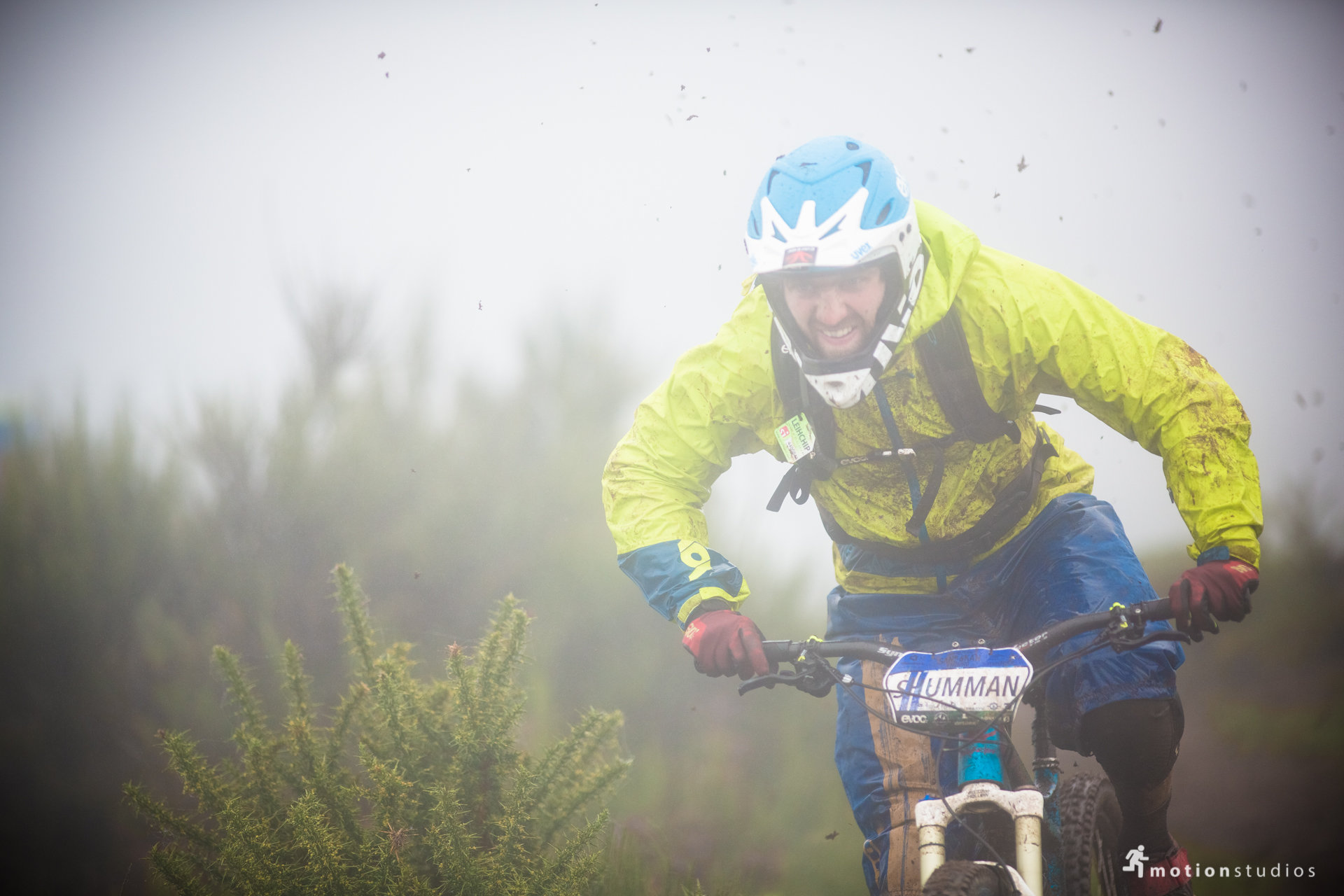 Jan Sallawitz, en plein sprint au départ de la Spéciale 2 sur le haut plateau, la plus physique, à faible pente, demandant de nombreuses relances sur du terrain cassant. Directeur marketing de EVOC, Jan a montré qu’il savait aussi rouler fort, en devançant de nombreux coureurs locaux.