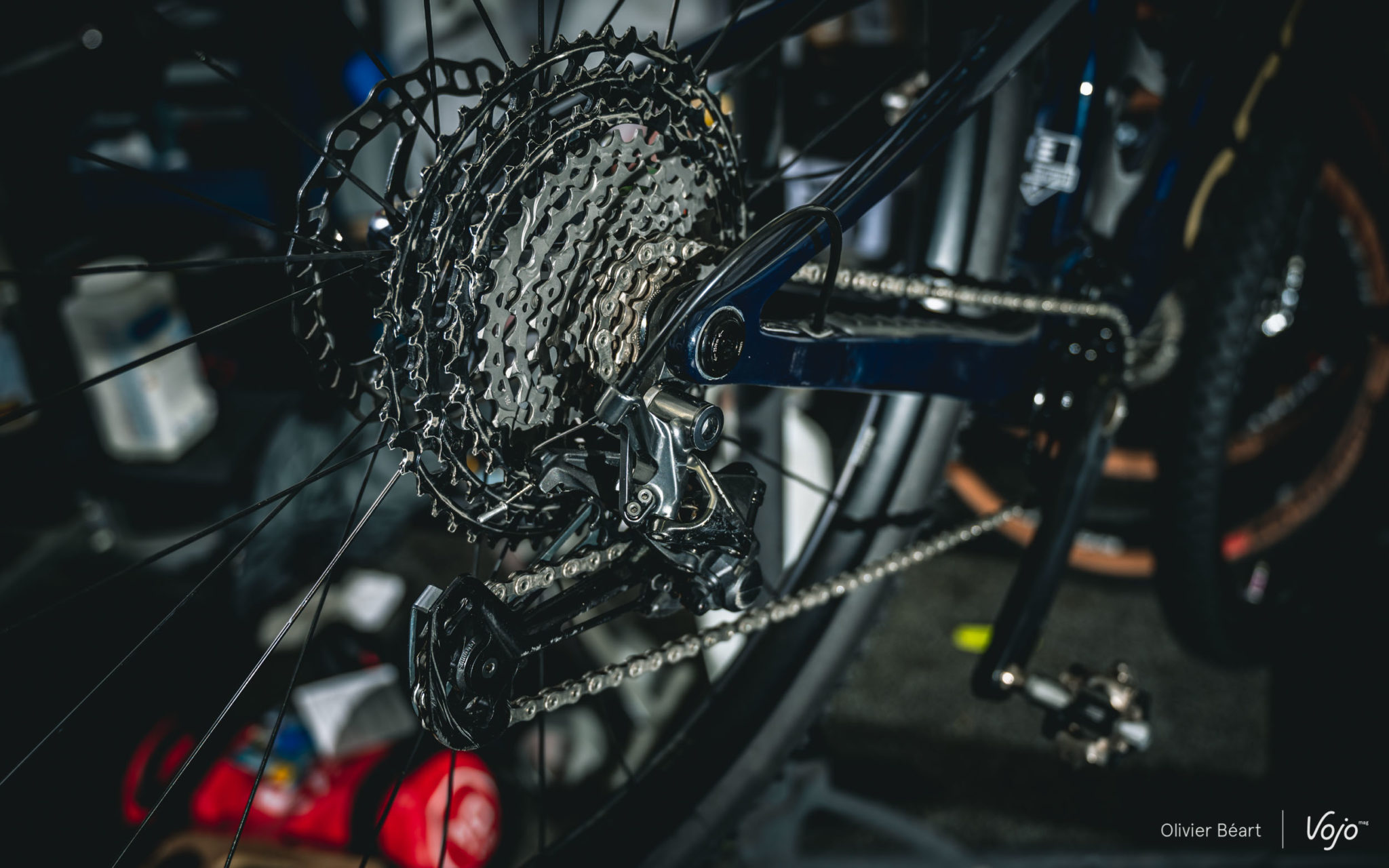 Notre homme fait par contre l’impasse sur la tige de selle télescopique : « Je n’ai pas pris l’habitude de rouler avec, et sur des épreuves de très longue distance, même s’il y a des portions techniques, il n’y a rien d’extrême non plus. Du coup, je joue la carte de la simplicité et du gain de poids. »