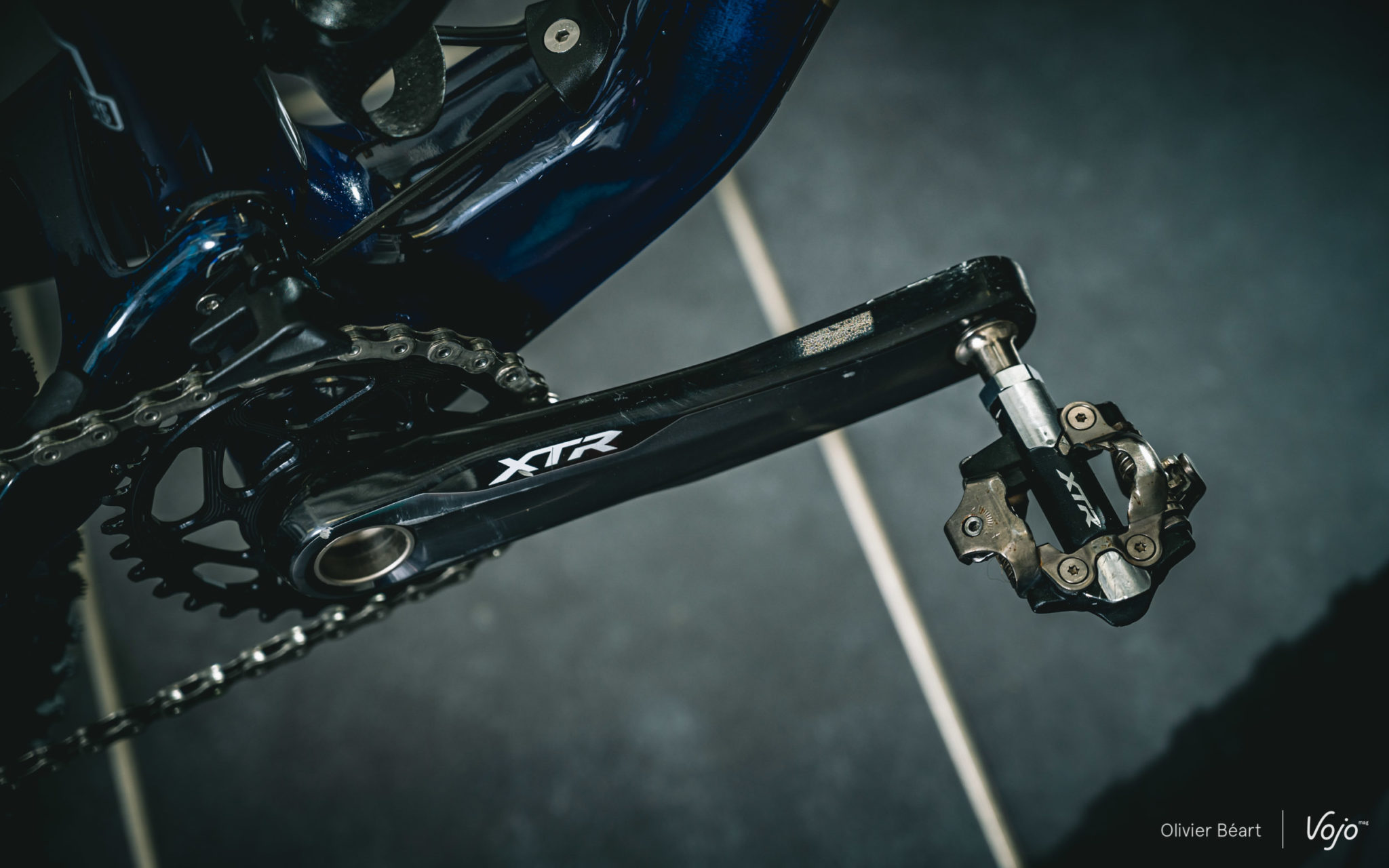 Grâce au soutien de Shimano, Fred a équipé son vélo d’un groupe XTR complet pour l’occasion. « J’ai déjà eu l’occasion de rouler avec un groupe électronique, c’est sympa, mais sur du très long comme cela, rien ne vaut la sécurité et la simplicité d’un groupe mécanique. » Seule entorse au « tout Shimano », le plateau ovale Absolute Black. « Je suis en ovale sur tous mes vélos depuis des années. Cela me convient bien. »