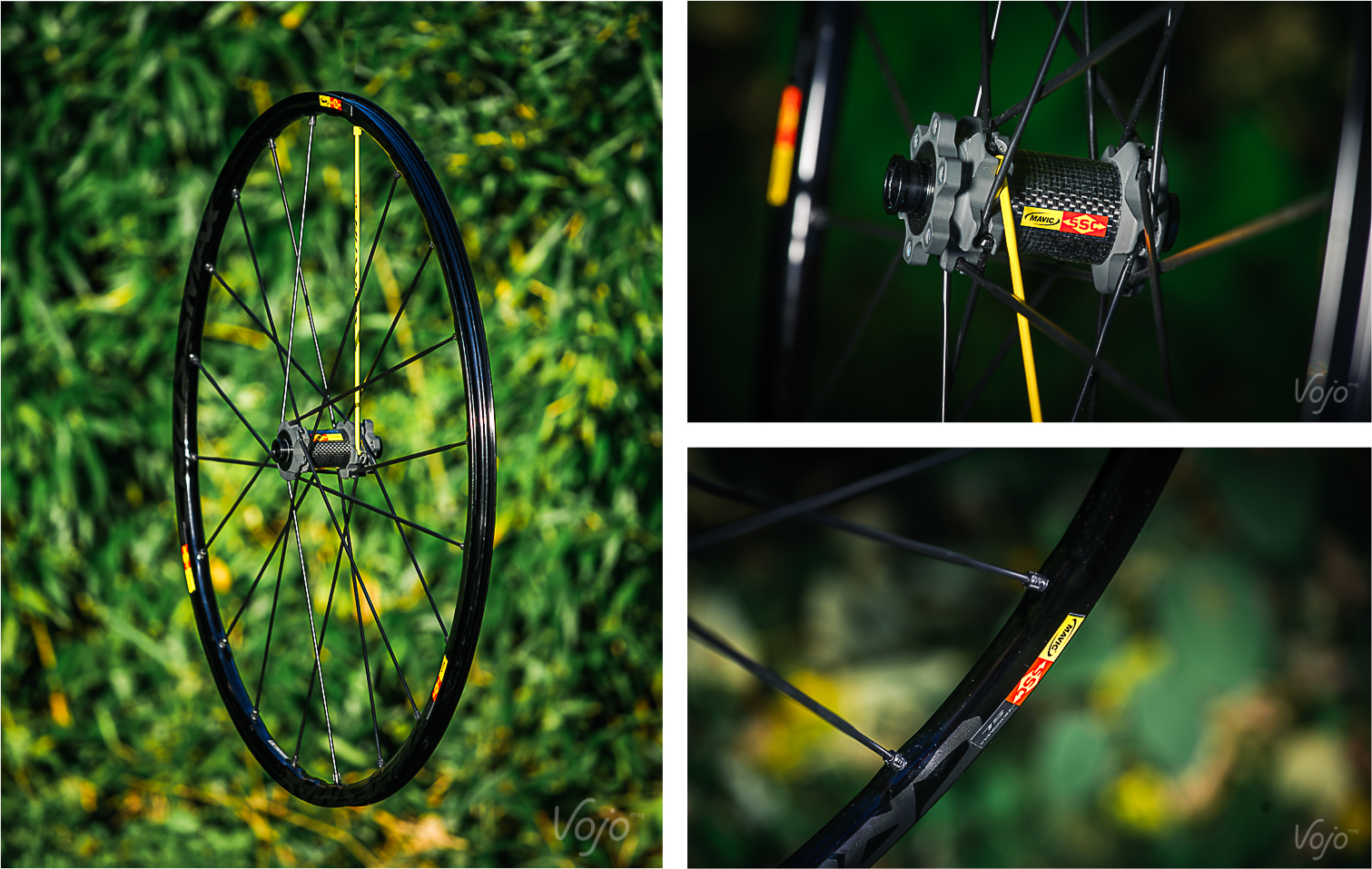 Nous avons demandé à Mavic les raisons de ce choix et voici la réponse de Michel Lethenet, responsable presse : « La largeur entre crochets (19mm) est effectivement la même que celle de la précédente Crossmax SLR. Plus large veut dire plus lourd, or nous souhaitions alléger cette roue le plus possible. Pour une utilisation XC, les pneus mesurent généralement entre 2.0 et 2.2, donc la largeur de la jante convient parfaitement. Plus large bénéficierait bien sûr au confort mais ce serait au détriment de la performance et la résistance au roulement (pneu plus carré, plus de surface en contact avec le sol). Selon nous, il est plus important de privilégier la performance sur ce produit vu l’usage auquel il se destine ». Vous avez les deux versions, nous vous laissons juger et nous apporterons plus bas notre ressenti sur le terrain pour également alimenter le débat.