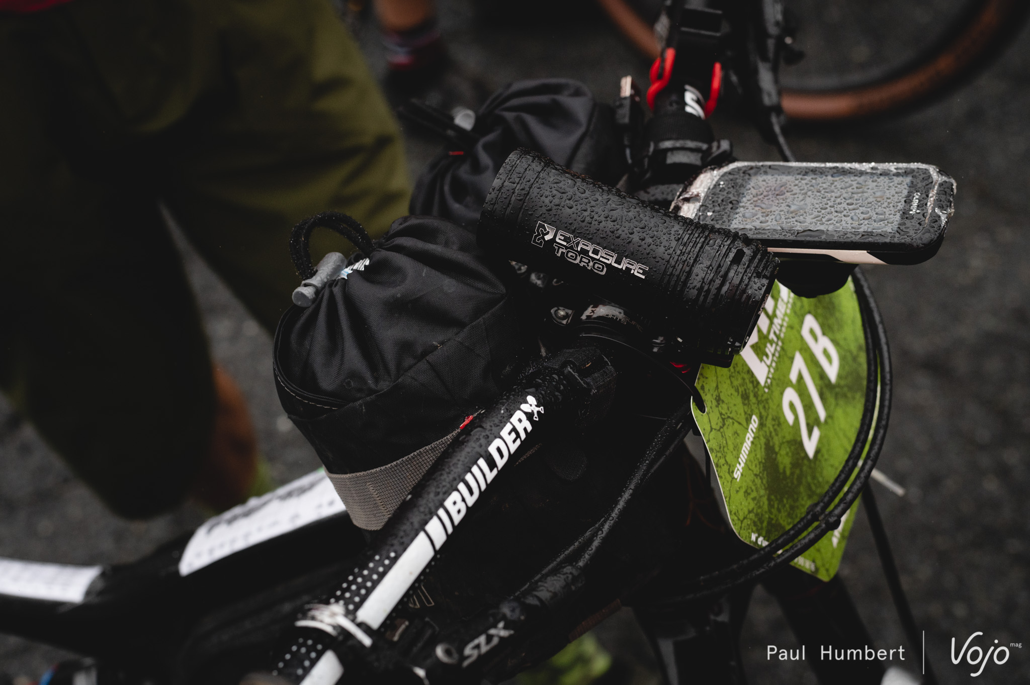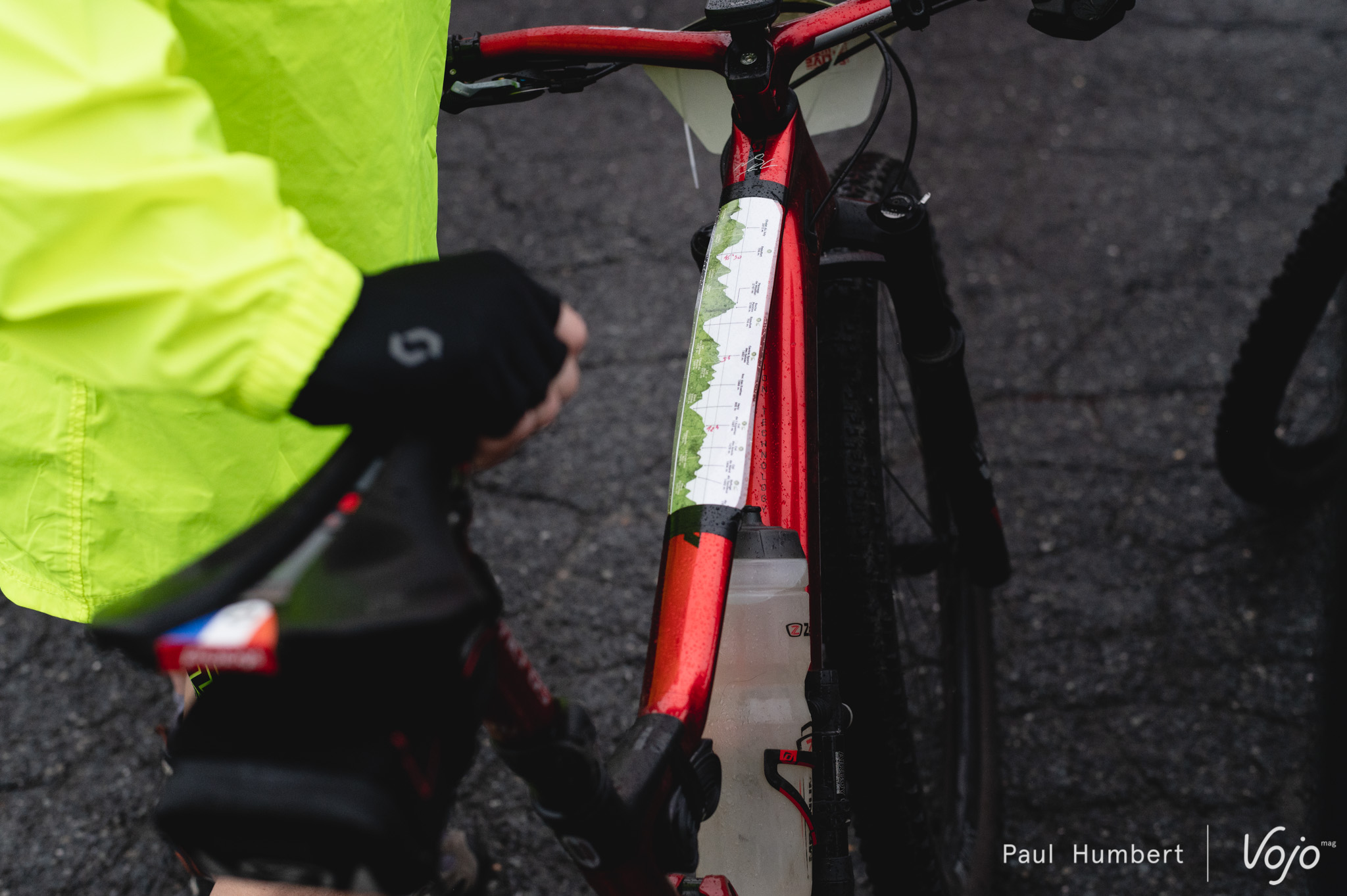 Le jour J, la météo désastreuse des jours qui précèdent ne laisse rien présager de bon. Et ce n’est pas fini car après une petite éclaircie, la météo prévoit que nous allons nous faire rincer en début de soirée. Heureusement, un retour du soleil est prévu pour le jour 2. Si nous arrivons jusque-là. L’organisation propose le transfert de 3 sacs vers les 3 bases de vie (où nous pouvons nous reposer maximum 90 minutes), mais les 100 premiers kilomètres se font en quasi autonomie, avec juste un ravitaillement après 50km et 2500m de d+. Les délais maxi sont calculés sur une base de 8km/h de moyenne. Sachant qu’une MB Race classique se roule à 12km/h pour les « bons », que le dénivelé au kilomètre est assez similaire ici et qu’il y a plus de portages, on imagine que 10km/h est un objectif réaliste.