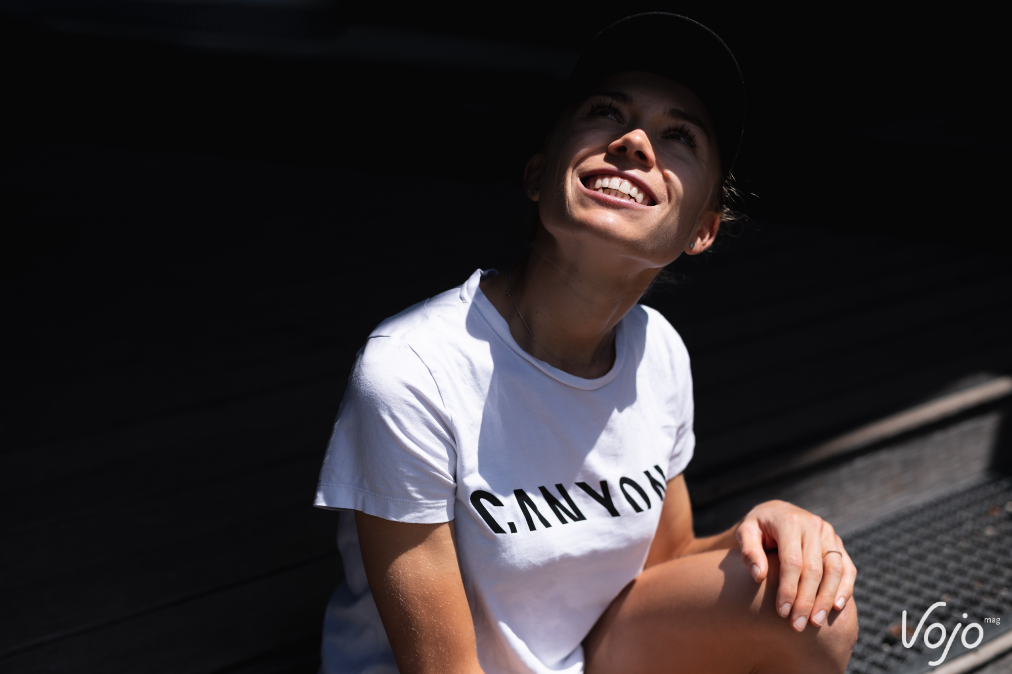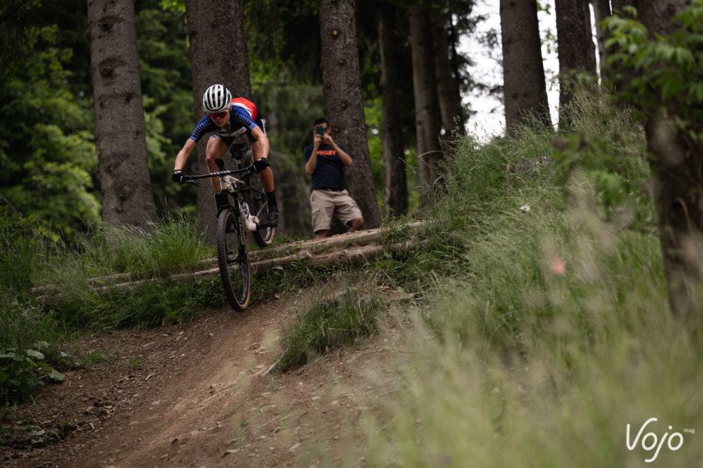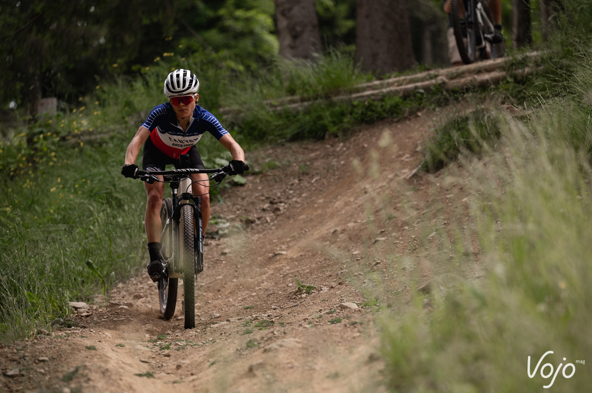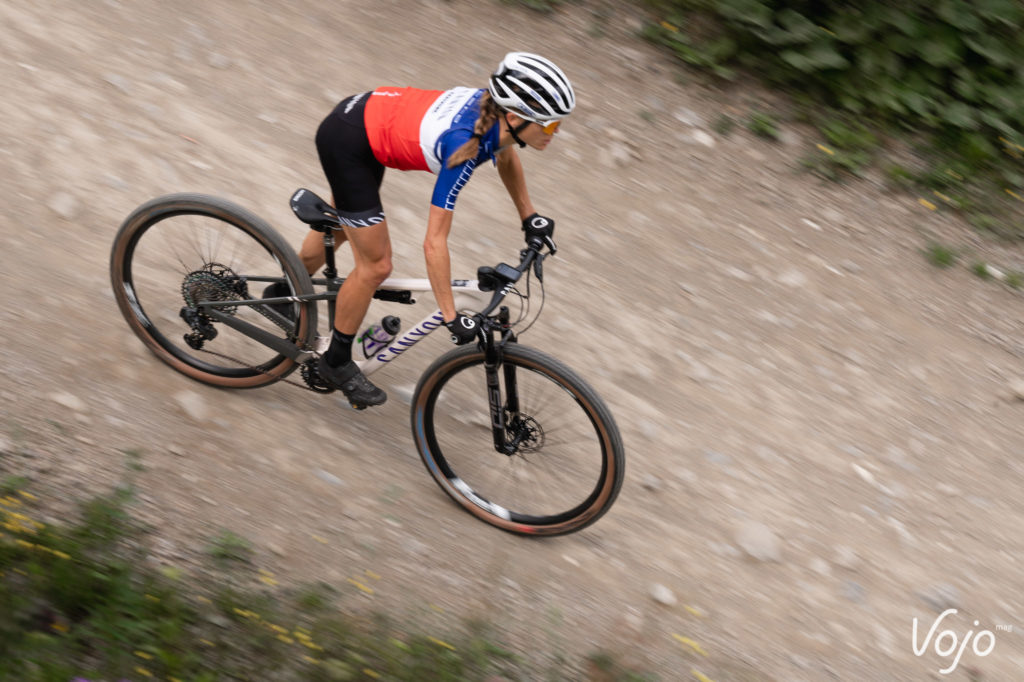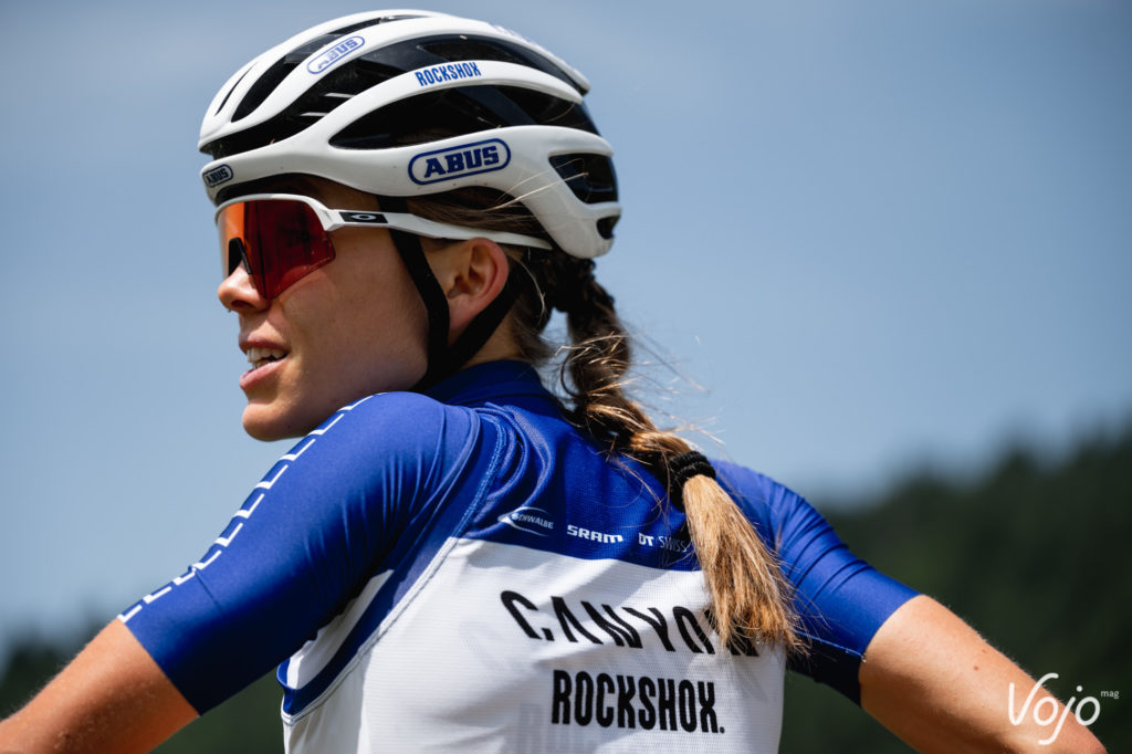 Alors cette prise de température à la maison, ça s’est passé comment ? Loana : C’est cool de revenir ici après un peu moins d’un an et de rouler sur le circuit qui a un petit peu changé, de changer d’endroit pour s’entraîner aussi c’est top. Les Gets c’est une belle station donc ça fait toujours plaisir de rouler ici. Tu parles de changements sur le parcours ? Loana : Oui, 2-3 petits passages techniques et quelques petits virages, après ça reste le même globalement. Il y aura 2-3 petites modifications, quelques petits pierriers, des petits sauts qui ont été rajoutés, ça ne peut être que mieux. Tu prévois une préparation toute particulière pour un tel événement ici ? Loana : Tous les ans le championnat du monde c’est une course particulière, c’est vraiment un objectif donc là le fait que ce soit à la maison c’est encore plus un objectif, mais on le prépare comme j’aurais préparé des championnats du monde dans un autre pays. Tu l’as roulé dans la boue en 2021, tu l’as roulé sur du sec en 2019, quelles sont les conditions qui te conviendraient le mieux pour les championnats du monde ici ? Loana : Ah un petit orage quand même ça serait pas mal ! Beau pour la course mais la pluie les jours d’avant, comme ça ça glisse, c’est technique en descente et c’est agréable pour le public s’il y a du soleil. Loana : Il ne faut pas, le but c’est d’arriver sur cette course en étant sereine et en sachant que tout ce que j’ai fait pour être en forme, je l’ai fait du mieux que je pouvais. C’est une course comme une autre, celle qui gagne a le maillot à la fin mais ça reste une course comme une autre. Est-ce que tu envisages de faire l’impasse sur des étapes de la coupe du monde, justement pour te préparer au mieux pour Les Gets ? Loana : C’est sûr que la saison est chargée en compétitions mais ça on fait vraiment au feeling avec mon entraîneur, on ne voit pas au jour le jour parce qu’il faut quand même prévenir le team un peu avant, mais il y aura sûrement quelques impasses. On en parle encore, on verra, ça reste dans notre préparation mais si j’ai envie de faire toutes les coupes du monde je les ferai, sinon je ferai quelques impasses. Loana : J’ai gagné le général de la coupe du monde l’année dernière donc cette année ce sera plutôt l’objectif championnat du monde, oui. Pour les autres années ravoir le général ou peut-être dès cette année, je ne sais pas, mais non là pour l’instant c’est vraiment le focus sur les championnats du monde. Ce qui a changé par rapport à l’année dernière c’est aussi ton équipe. La structure est la même donc qu’est-ce qui change concrètement, à part la couleur du maillot ? Loana : Les gens derrière ne changent pas mais la structure en elle-même a quand même changé, on a grandi, on est un vrai gros team. Maintenant on a un camping-car, les moyens changent du tout au tout mais l’atmosphère au sein du team reste, même avec les nouveaux l’ambiance est top. C’était vraiment ce que je voulais en évoluant comme ça, avec les mêmes team managers, avec Thomas [Griot] et bien sûr le même mécano. L’année dernière c’était ta première saison complète chez les Elites, est-ce que tu as appris des choses, est-ce que tu abordes les choses d’une manière un peu différente cette année ? Loana : Oui l’année dernière je découvrais, je ne m’attendais pas non plus à tout gagner. Il y a aussi eu les JO où vraiment tout est arrivé d’un coup… Je pense que j’ai su apprendre de mes erreurs pendant l’hiver, prendre de l’expérience. J’ai beaucoup récupéré et même si je sens que j’ai encore beaucoup à apprendre, j’ai déjà beaucoup appris. Loana : Je pense que j’ai beaucoup appris sur l’approche d’avant course, sur ce qui peut se passer en course mais aussi tout au long de l’année. Ne pas mettre de pression pour rien, relativiser sur plein de choses… Si je fais du vélo c’est avant tout parce que c’est ma passion et je l’avais oublié, tout est tellement venu d’un coup que je ne voyais même plus en fait cet aspect-là de la discipline. Je ne voyais que les médias, le business. Là j’ai su prendre du recul par rapport à ça et maintenant dès que je monte sur le vélo je m’éclate. C’est pour ça que j’aime bien venir aux Gets ou rouler dans les montagnes plus proches de chez moi, parce que c’est ce dont j’ai besoin.
