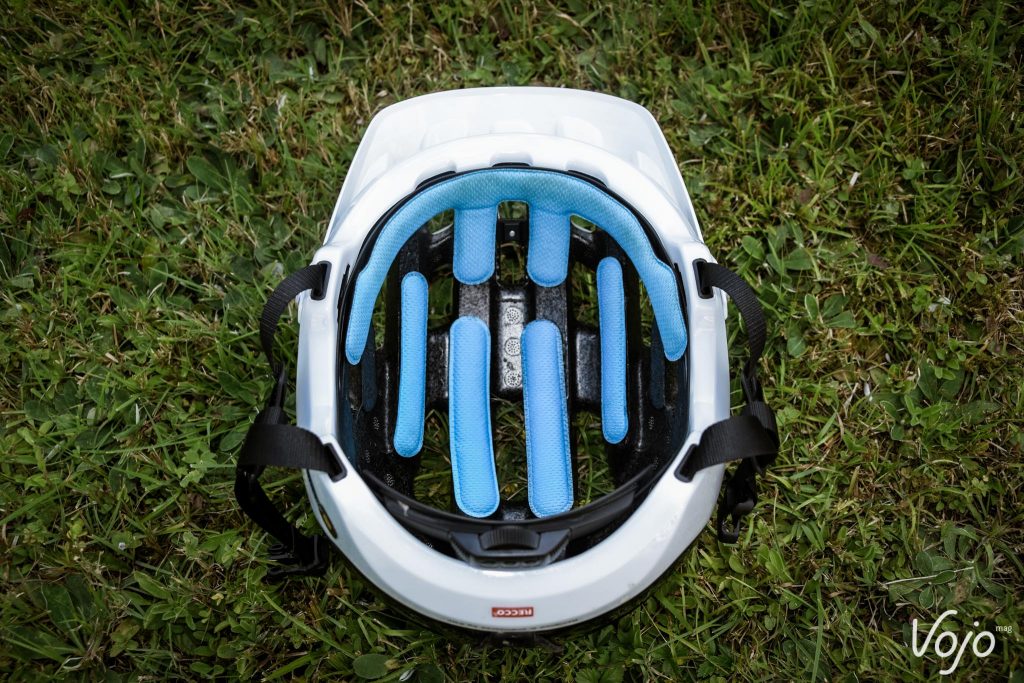 Le système SPIN (pour Shearing Pads INside) a été lancé par la marque suédoise Poc l’année dernière après des années de collaboration avec MIPS. L’idée derrière ce système est la même, réduire l’impact des forces rotationnelles, mais le mode de réalisation est beaucoup plus simple. Ici, c’est directement les mousses de confort à l’intérieur du casque qui intègrent un gel qui peut s’étirer dans toutes les directions.