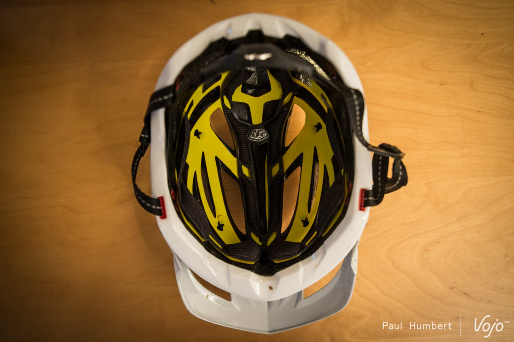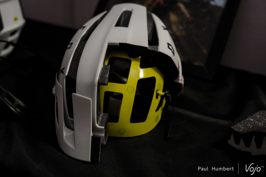 Elles ne sont pas abordées dans cet article mais de nombreuses marques ont également développé des technologies spécifiques dans la conception de la mousse EPS du casque. Ces solutions, qui mettent généralement en oeuvre plusieurs densités de mousses liées les unes aux autres de manière plus ou moins complexes, se concentrent exclusivement sur l’absorption de l’énergie du choc. On peut ainsi citer le Composite Fusion chez Kali ou encore le Varizorb chez Fox (photo ci-dessus).