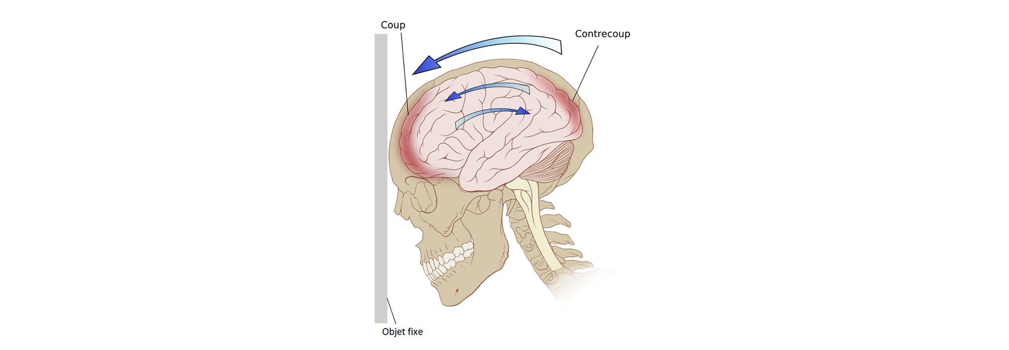 Suivant le type de force à l’origine de la blessure, les lésions peuvent être localisées en surface au niveau de l’impact, à l’opposé ou même en profondeur (corps calleux, tronc cérébral) lorsqu’il y a cisaillement ou rotation ou que l’accélération est très violente. Le plus souvent, cette accélération ou décélération se produit suite à un impact mais de simples mouvements rapides et violents de la tête (d’avant en arrière par exemple) peuvent également être à l’origine d’un traumatisme. Le syndrome du bébé secoué en est un bon exemple.Les normes