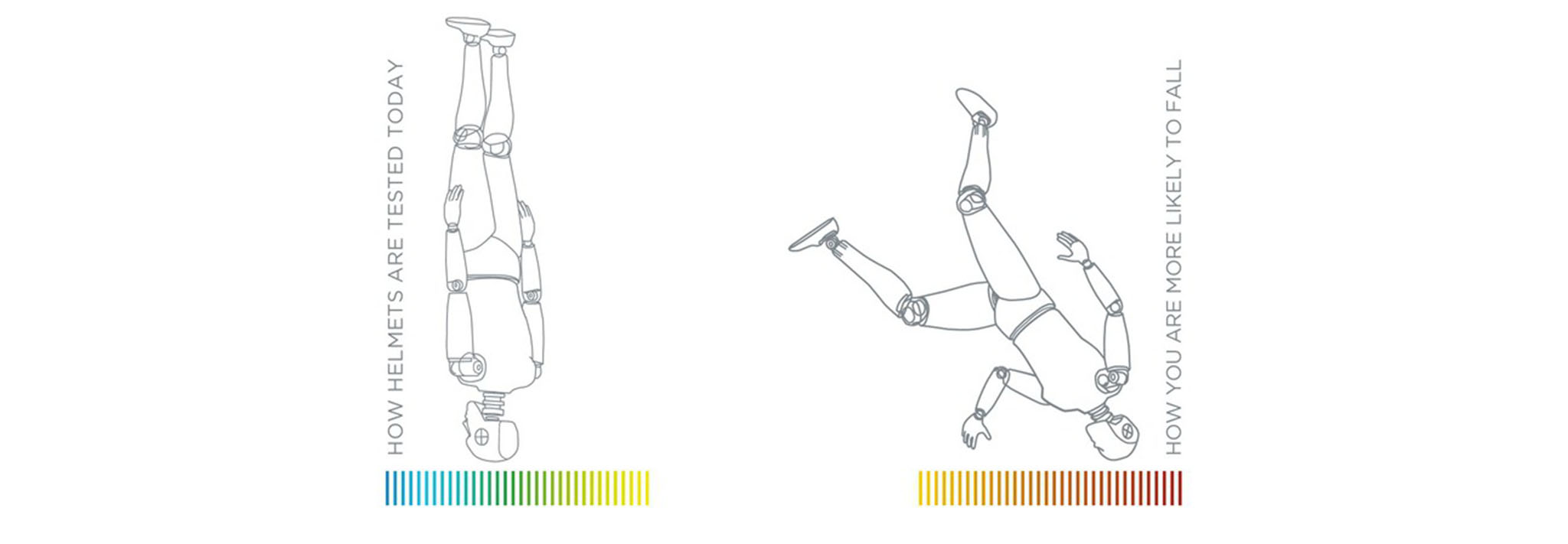 Pour mieux comprendre cette norme, il faut comprendre ce qui se passe lorsque l’on chute. On distingue deux types d’accélérations sur un choc : les accélérations linéaires, c’est-à-dire la part de l’impact dirigée droit vers le centre du crâne, et les accélérations angulaires qui entraînent une rotation de la tête. A moins de tomber avec la tête parfaitement à 90° par rapport au sol, c’est-à-dire droit comme un I (très courant en VTT, vous en conviendrez), on retrouve ces deux accélérations dans toutes les chutes.