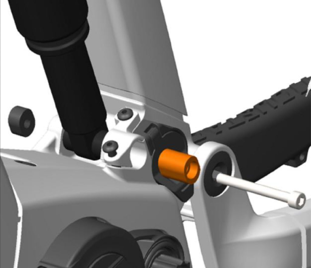 Moustache ancre désormais son amortisseur sur une pièce « mobile » nécessitant un serrage en deux étapes pour s’assurer un alignement parfait. La technique est directement inspirée du système de fixation de l’axe des dernières fourches Fox.