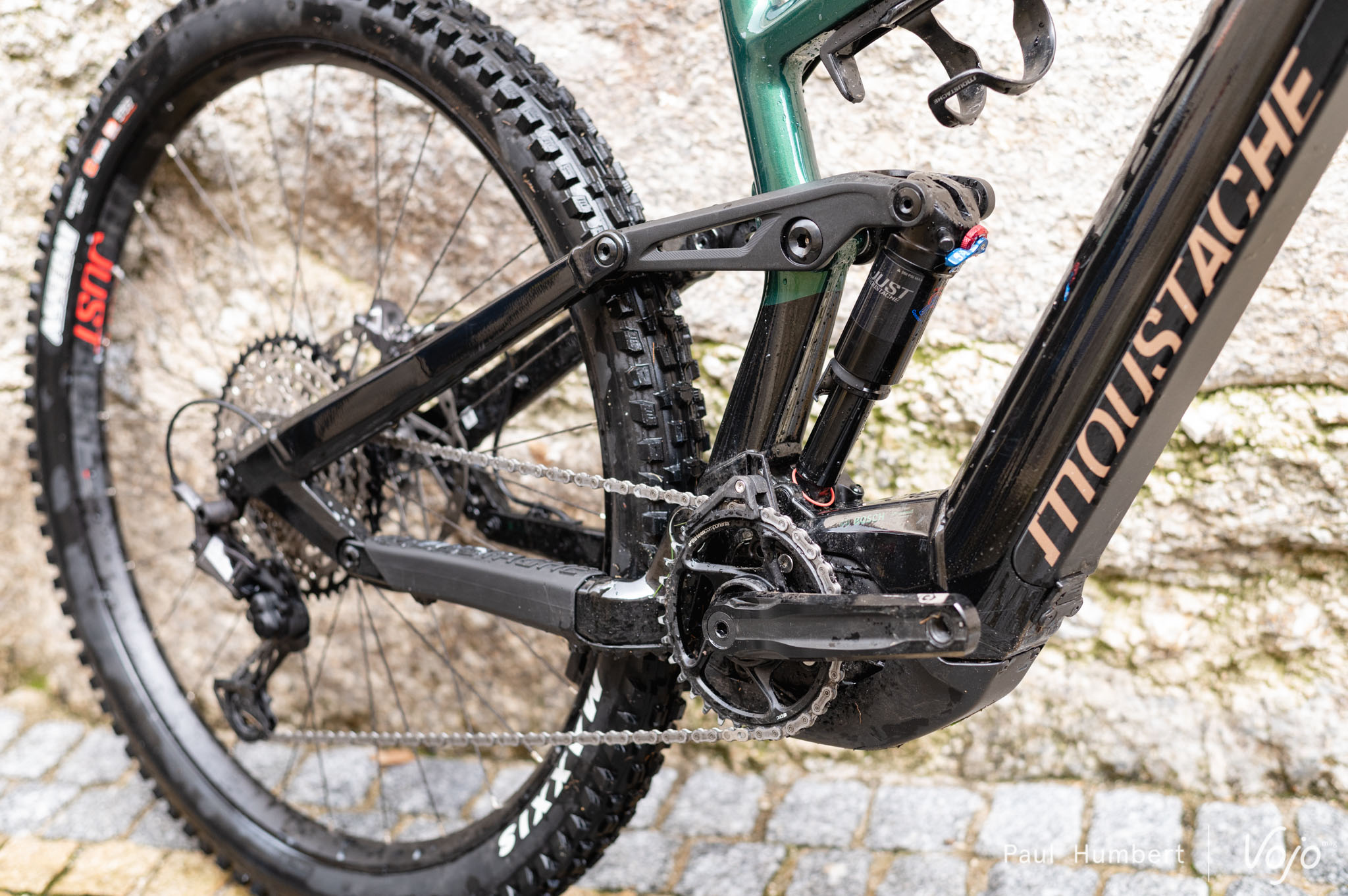 Côté cinématique, le vélo évolue légèrement et, si la suspension reste globalement identique avec le choix d’un amortisseur maison, le positionnement des points d’ancrages de la biellette 15mm plus en avant change légèrement le travail de cette dernière. Emmanuel Antonot annonce chercher un vélo « qui descend bien, qui grimpe bien, mais qui apporte plus de précision ».