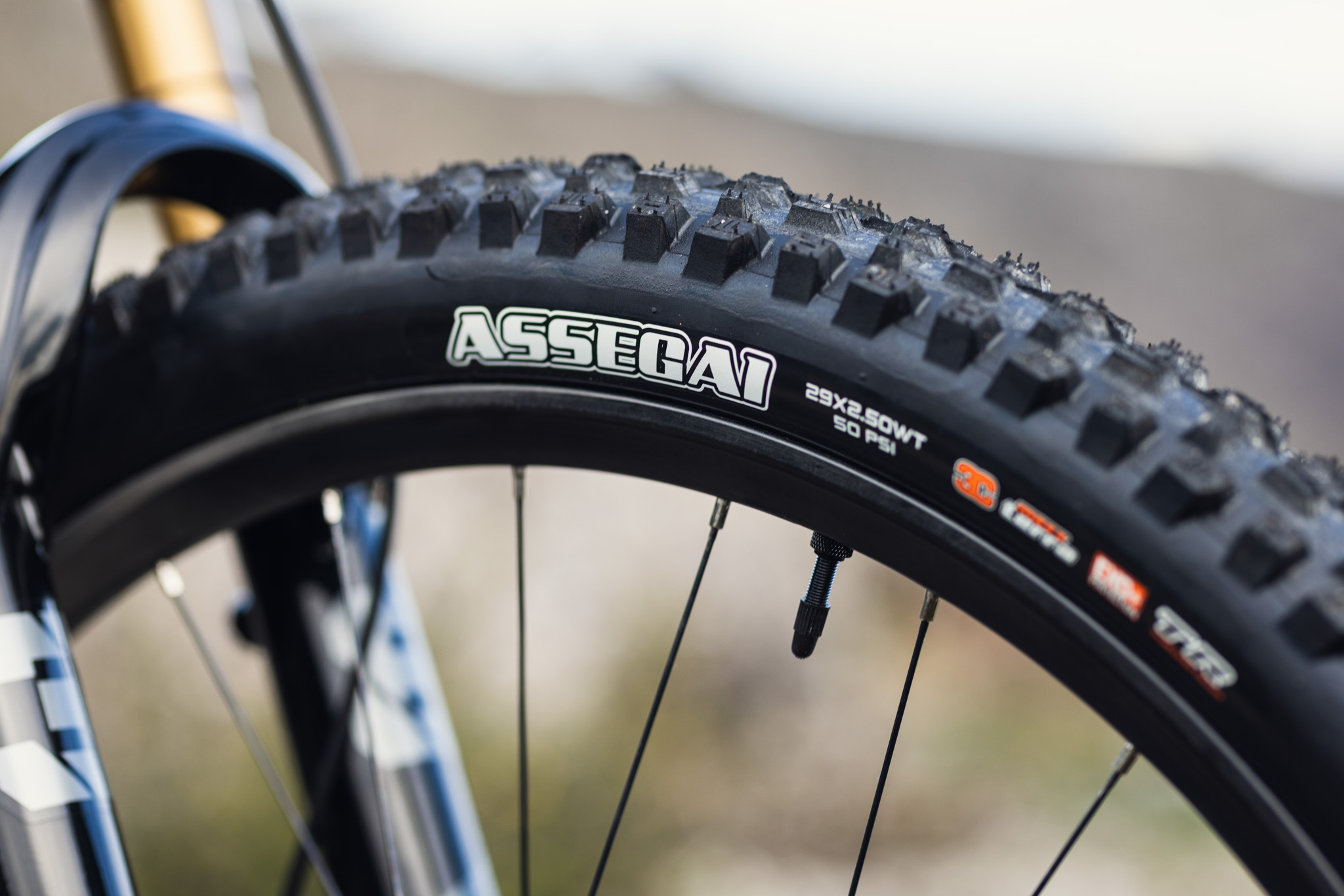 Moustache a fait le (bon) choix de sélectionner une paire de Maxxis Assegaï en section 29×2,5 pour toute sa gamme. Sur la gamme Game, les carcasses Exo/Exo+ seront certainement trop légères mais c’est un bon point de départ. À l’arrivée en magasin, les vélos sont prêts à être installés en tubeless, il ne reste plus qu’à injecter le liquide et gonfler.