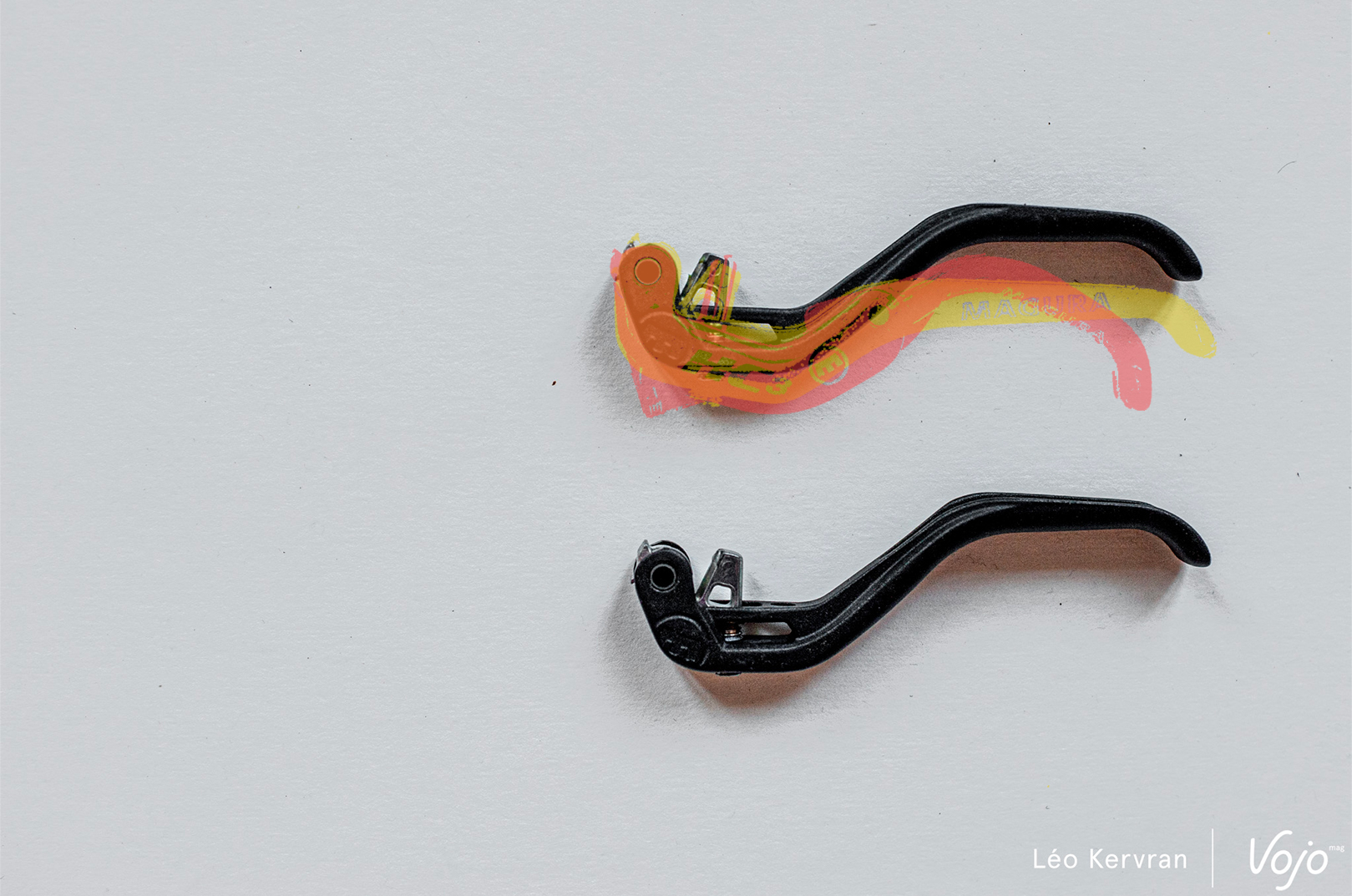 Afin de pouvoir modifier ce ratio, certaines marques permettent de changer des pièces du frein selon ses préférences. C’est notamment le cas de Magura, qui propose 4 leviers différents dans sa gamme : on peut monter un levier 2 doigts, plus long et qui offre donc un bras de levier plus important, un levier équipé de réglages plus précis… Nous avions eu l’occasion d’essayer toutes ces options il y a quelques temps, le test est à retrouver ici : Test | Magura MT7 : 4 leviers, 3 paires de plaquettes et 2 disques sur le terrain