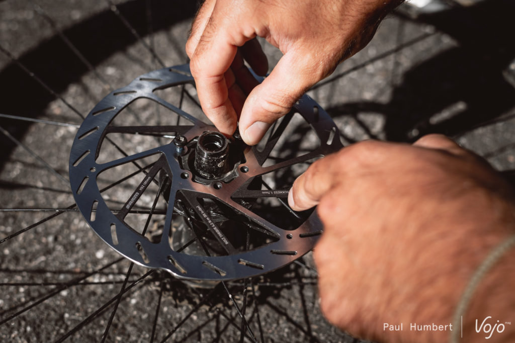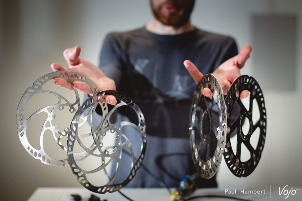 Le disque est le dernier élément de la chaîne. Plus on s’éloigne de l’axe de roue, plus son bras de levier est important. Passer d’un disque de 203 mm de diamètre à un disque de 220 mm permet de gagner un peu moins de 10% de puissance au freinage. Mais alors, utiliser des freins à patins reviendrait-il, sur une roue de 29″, à utiliser un disque de plus de 600 mm ?