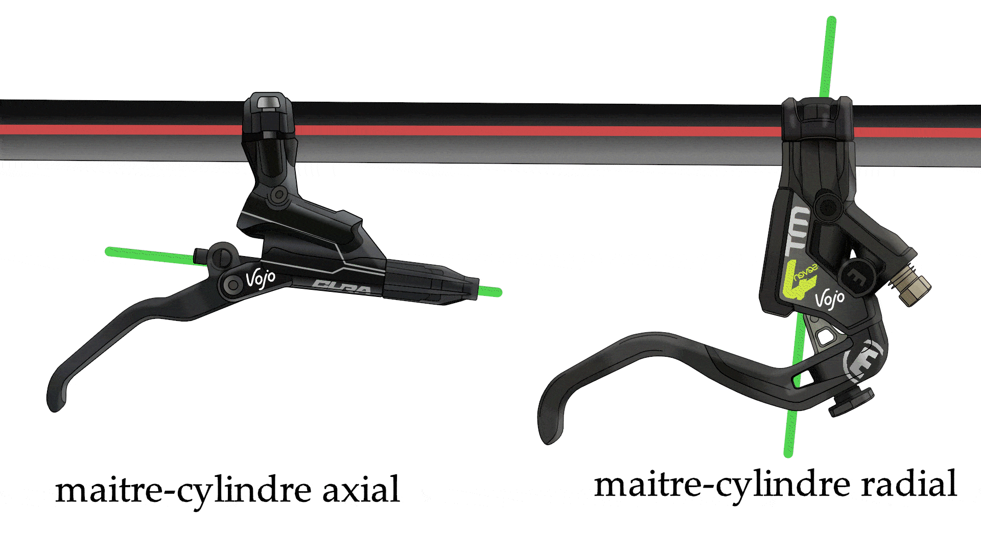« Les maîtres-cylindres axiaux ont un design plus conventionnel, pour des applications plus urbaines/de tous les jours. Ils sont un peu plus lourds pour les raisons énoncées ci-dessus mais les performances de freinage peuvent être identiques, cela dépend de la conception globale, des rapports mécanique et hydraulique. » On ajoutera qu’il est aussi plus facile de faire un bloc rigide (gage de performance, de constance et de prévisibilité) avec une conception radiale. Souvenez-vous des Shimano Deore XT (axiaux) série M8000, avant qu’ils aient les deux points d’appui sur le cintre…
