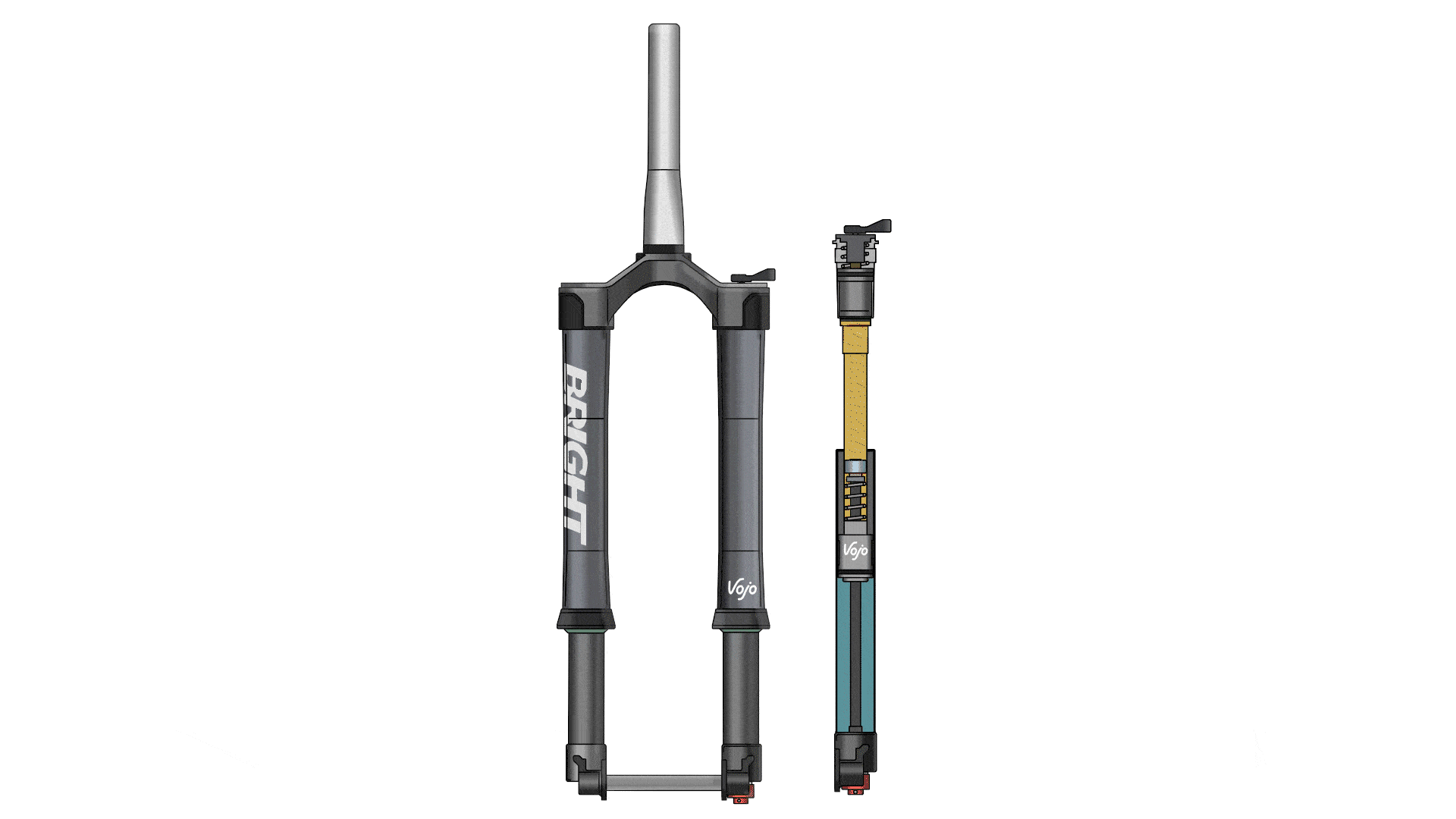 Certaines marques ont cherché à faire les choses d’une manière encore plus différente, comme Cannondale qui combine ces deux systèmes dans une fourche monobras inversée: la Lefty. Chez Bright, une marque Italienne, tout est regroupé au même endroit comme chez Cannondale, à la différence qu’ici, on est sur une fourche inversée « normale », avec deux plongeurs et deux fourreaux.