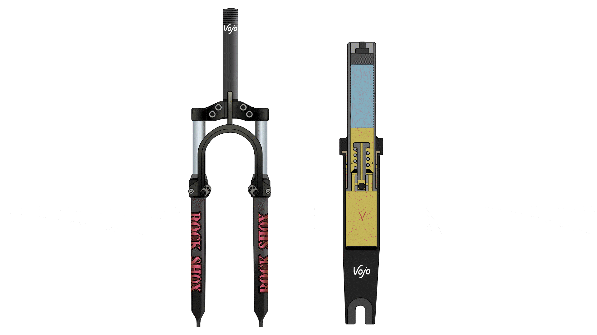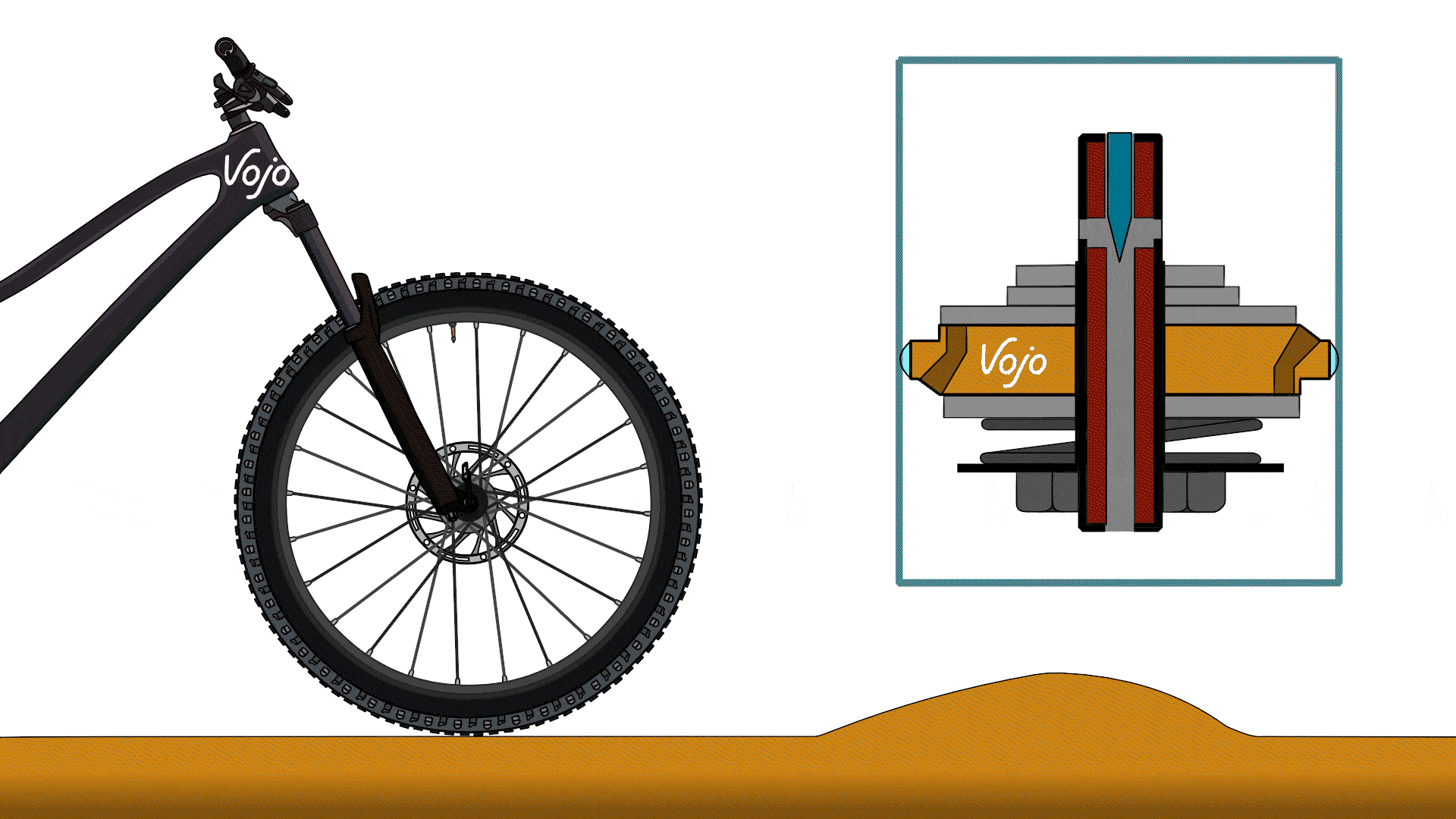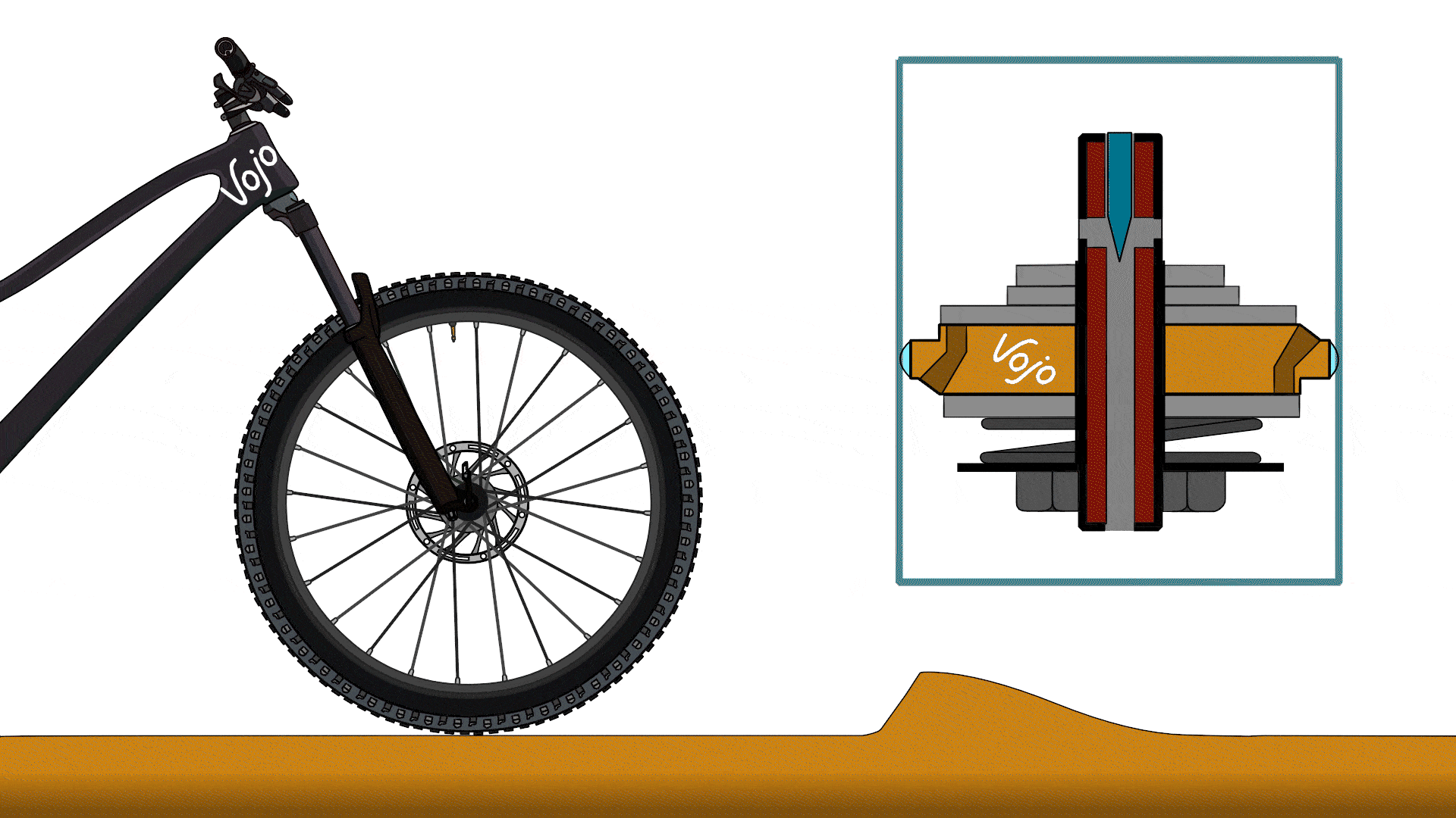 Si la fourche n’était pas équipée d’une cartouche, elle se comporterait comme un bâton sauteur. Après avoir rencontré un obstacle, elle ne cesserait de se comprimer, de se détendre, de se comprimer à nouveau et ce jusqu’à ce qu’elle retrouve sa position initiale. Tout le contraire de ce que l’on recherche : l’objectif est d’amortir les chocs afin de garder la roue en contact avec le sol puis de ramener la fourche à sa position initiale le plus rapidement possible.