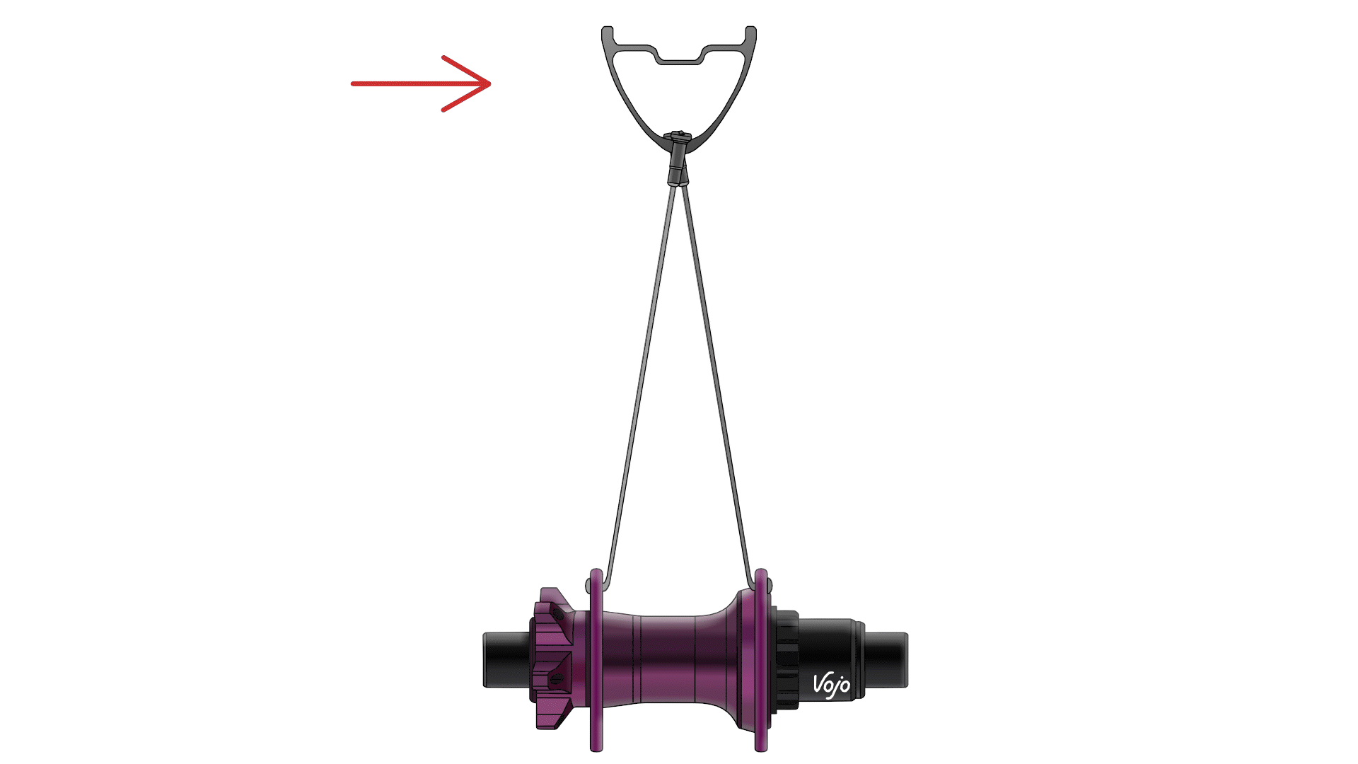 Pensez aux rayons de la marque allemande Pi Rope ou des américains de Berd. Ces rayons, réalisés à base de fibres en Vectran pour le premier et en polyéthylène de masse molaire très élevée (UHMWPE) pour le second sont, d’un point de vue structurel, assimilables à des cordes. Il est impossible que le moyeu soit soutenu par les rayons du bas puisque dans cet exemple, ces derniers sont incapables travailler en compression. Il paraît ensuite logique que le moyeu soit supporté par l’ensemble des rayons restants.