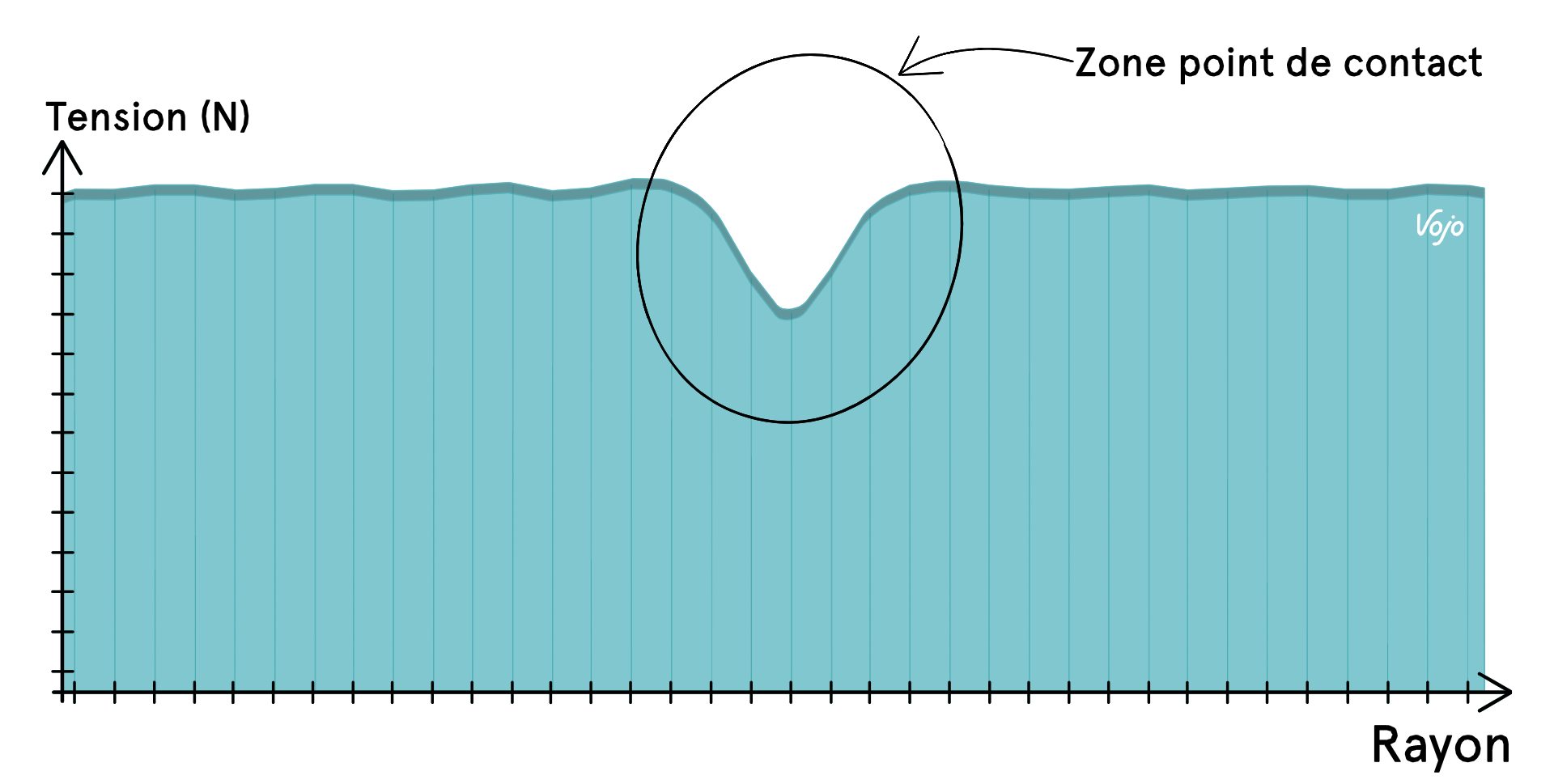 En suivant ce constat, lorsque l’on roule, la tension des rayons varie en permanence. Les rayons tournent autour du moyeu et passent les uns après les autres au niveau du point de contact de la roue. On note alors une diminution de la tension du rayon à l’approche de cette zone, puis une augmentation à mesure qu’il s’éloigne du point de contact.