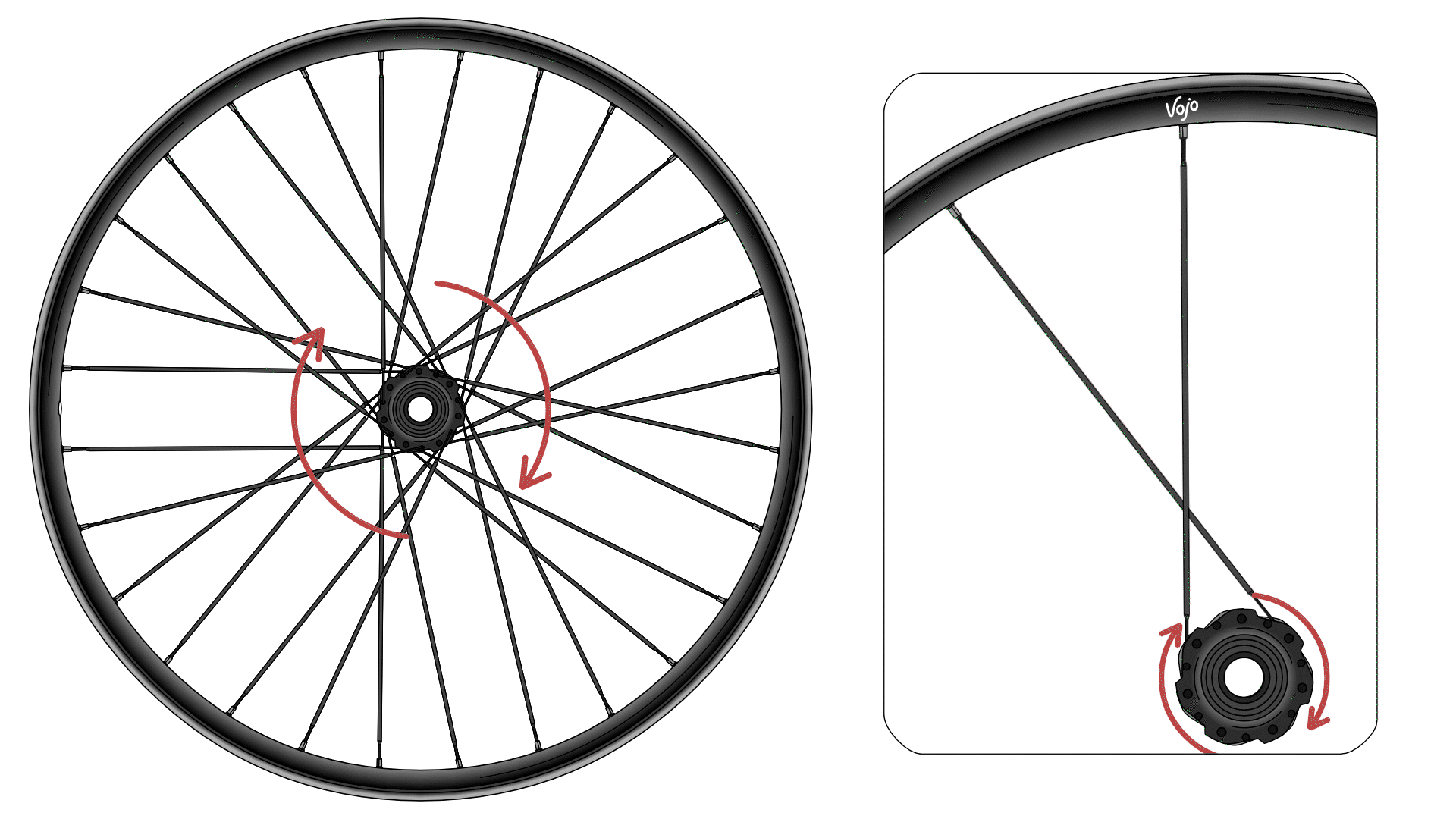Si une roue peut être affectée par des forces provenant de l’extérieur, elle peut également réagir à des forces internes. Par interne, on pense notamment au pédalage, phase durant laquelle les manivelles entraînent le plateau, qui tire sur la chaîne et provoque la rotation de la cassette. Cette dernière emmène alors le moyeu en rotation par l’intermédiaire du corps de roue libre mais il reste encore à transmettre l’effort jusqu’au pneu. Comment ça se passe ?