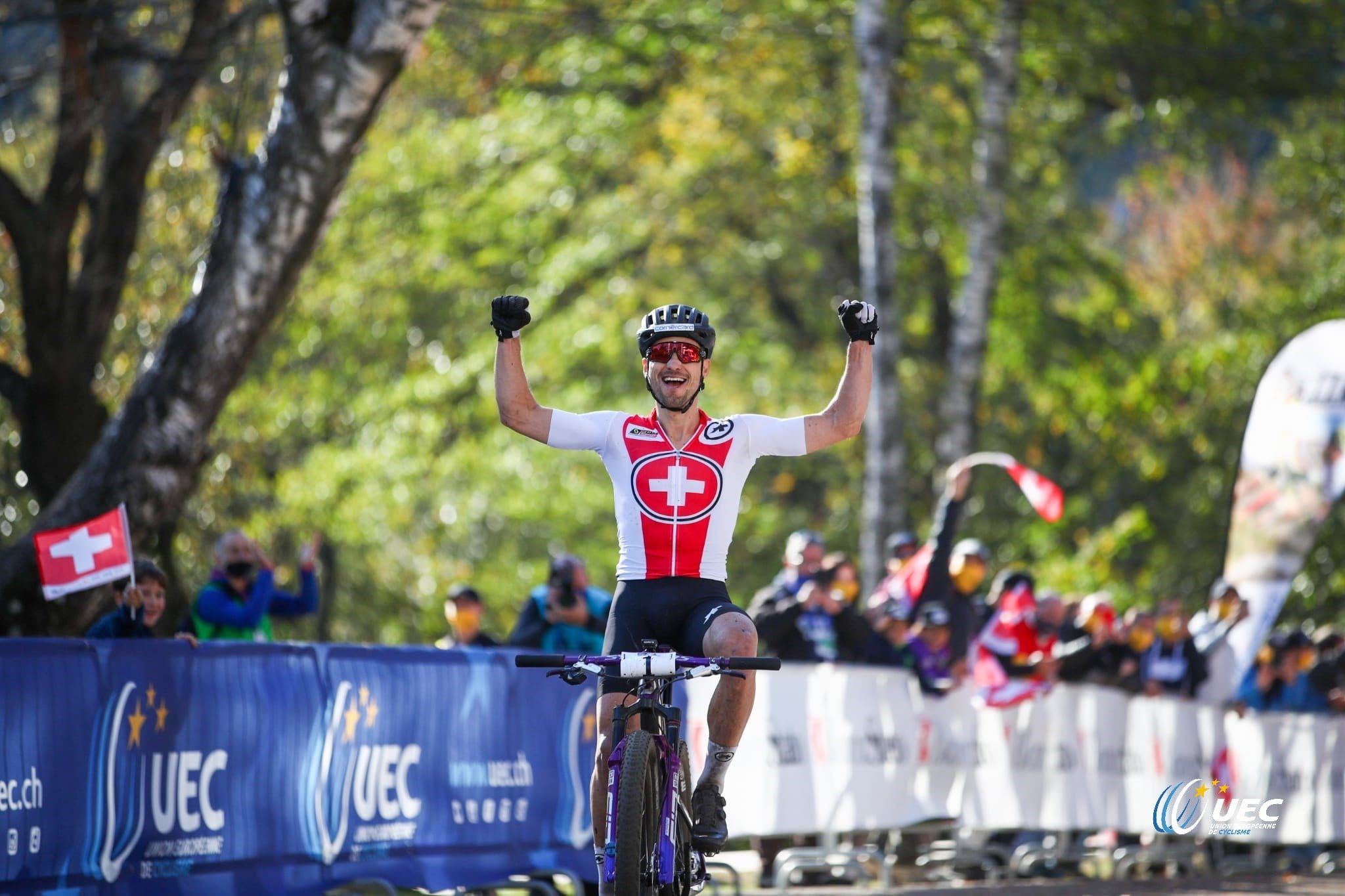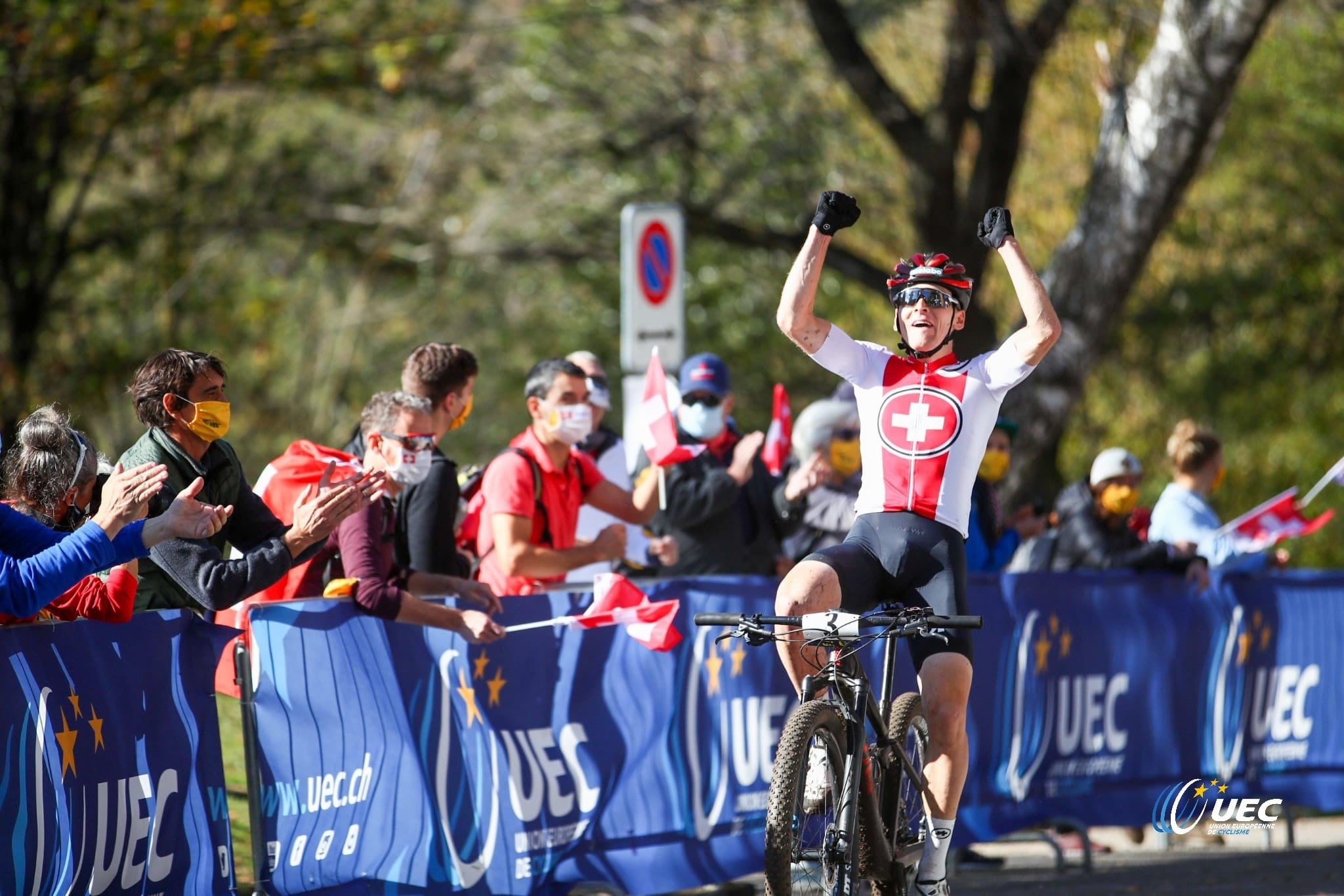 Nino Schurter a beau ne plus être champion du Monde, il n’en reste pas moins un grand champion. Il l’a montré en allant chercher le titre de champion d’Europe 2020 sur une épreuve à laquelle il ne s’aligne habituellement pas. Et cela n’a pas été facile, puisqu’un certain Titouan Carod lui a mené la vie dure, très en forme et mis en pleine confiance par sa 3e place au championnat du monde.