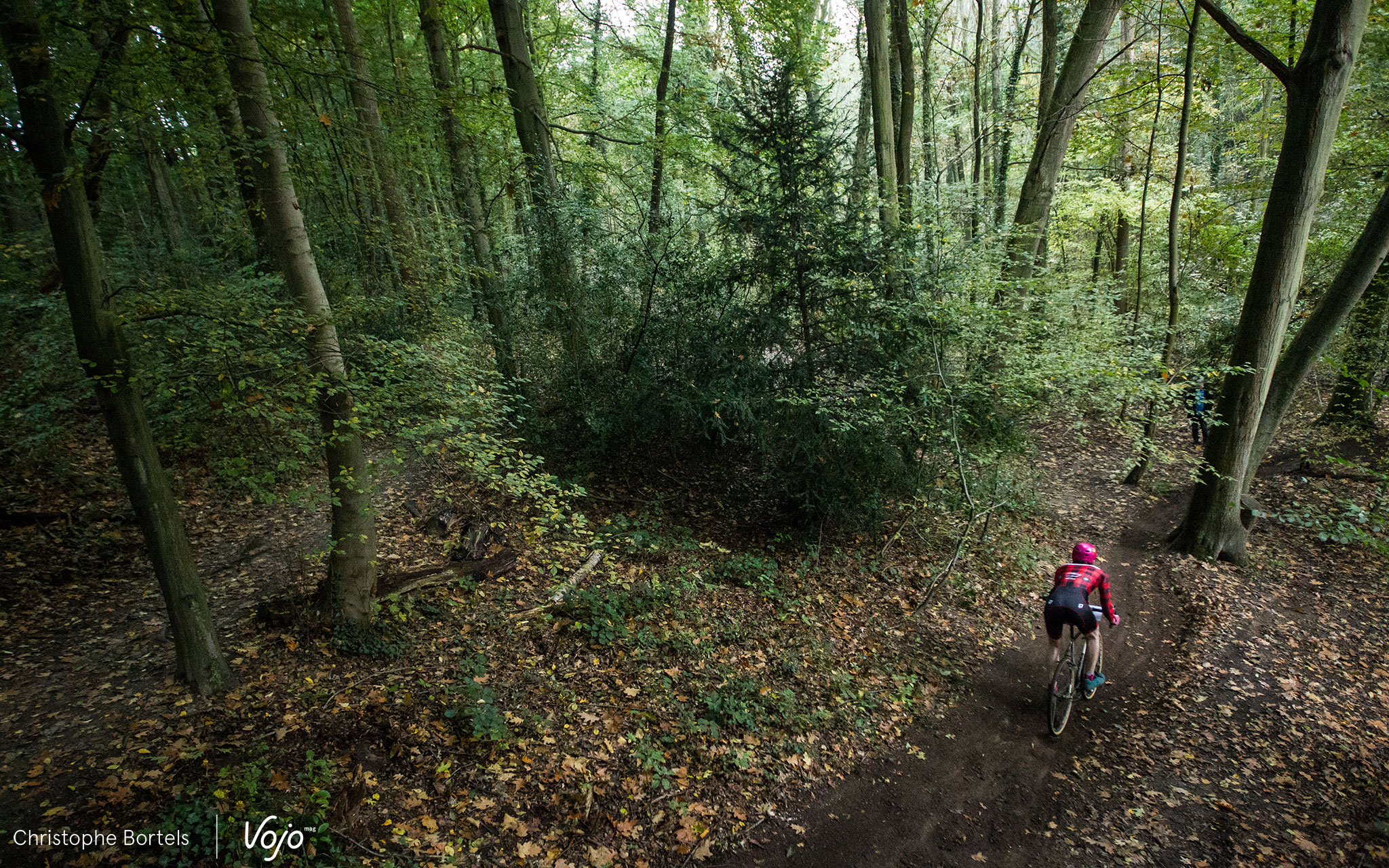 Ne vous attendez pas à un tracé type Coupe du Monde où on a l’impression de jouer sa vie à chaque mètre. Non, ici, à faible allure, les petits chemins n’ont rien de technique. La course attire d’ailleurs chaque année quelques équipes de locaux qui ne sortent leur vélo que quelques fois par an, des gars en cyclocross,…