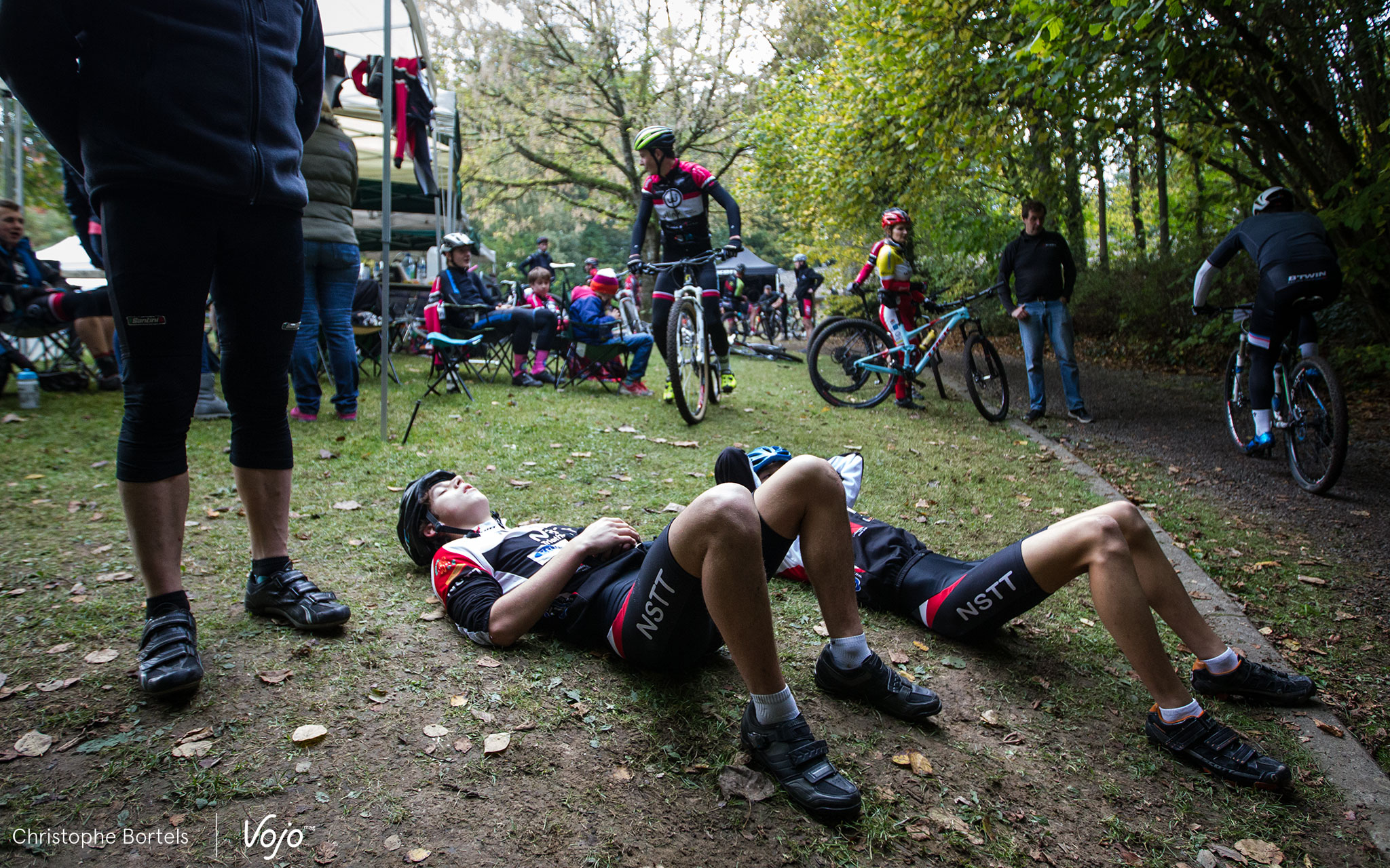 L’idée de le faire en relais permet de s’amuser sur les sentiers, mais aussi en-dehors. La zone de passage des témoins est compacte, de sorte que ça discute, ça échange et ça rigole ferme dans le coin (mes coéquipiers vous diront que certains exagèrent et manquent de louper leur relai, mais ce n’est que pure calomnie). Visiblement, ça n’empêche pas certains de piquer un petit roupillon…