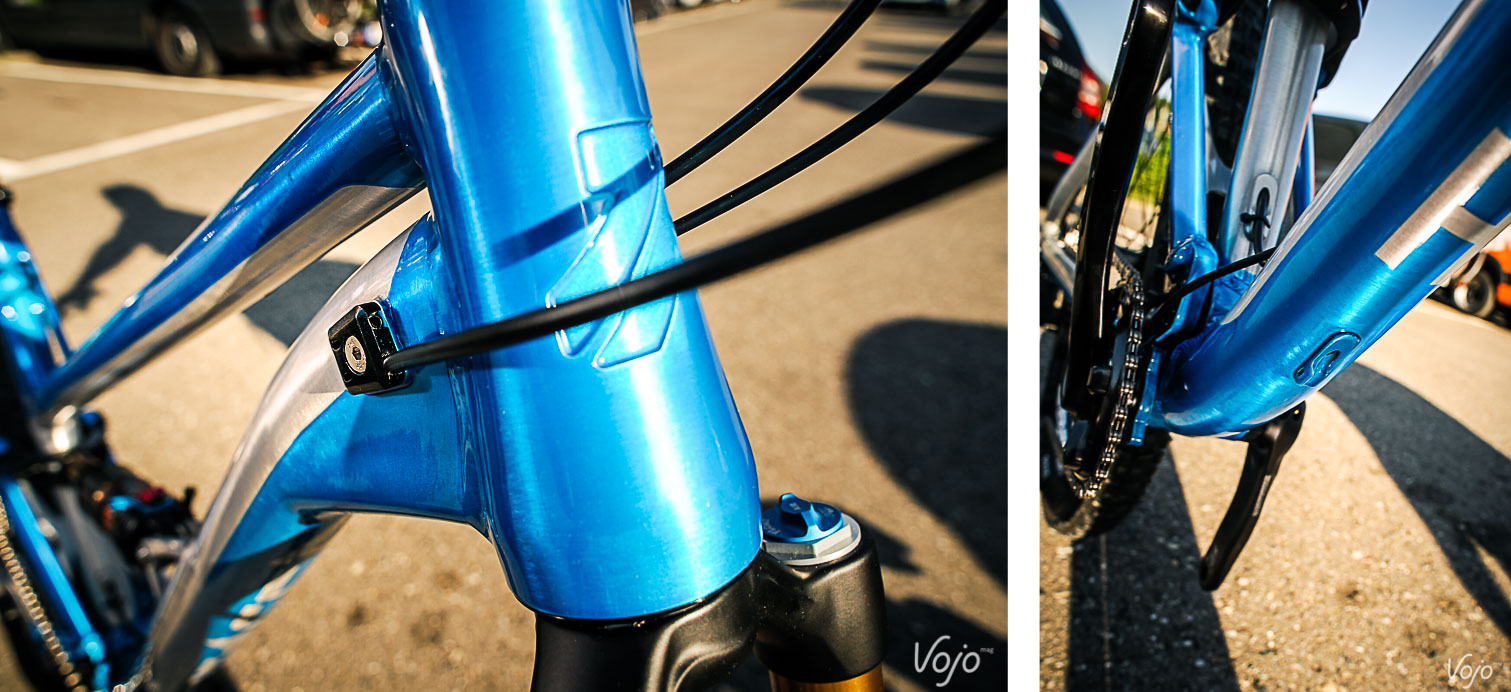 Cette solution de passage des câbles est particulièrement intéressante et elle témoigne du soin apporté à chaque détail sur cet Alutech ICB2.0. Cela montre clairement que ce type de démarche permet de faire émerger de nouvelles idées. On remarque aussi que le trajet suivi par la câblerie est très soigné.
