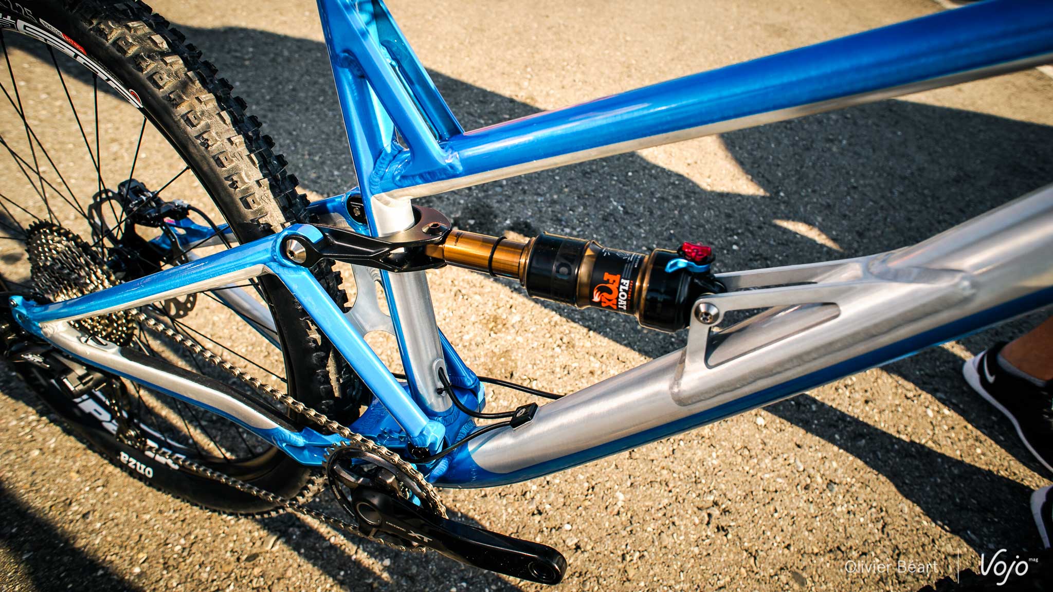 Stefanus Stahl poursuit : « Les bikers voulaient clairement un vélo polyvalent et surtout fiable. C’est pour cela qu’il s’agit d’un mono-pivot, combiné à une pièce d’extension qui permet d’augmenter le bras de levier et l’efficacité de la suspension. Cette pièce est aussi un bel exemple de l’apport de la communauté, puisqu’un ingénieur qui en fait partie pensait pouvoir l’améliorer, ce qu’il a fait, et c’est sa version qu’on retrouve sur la version de production ».