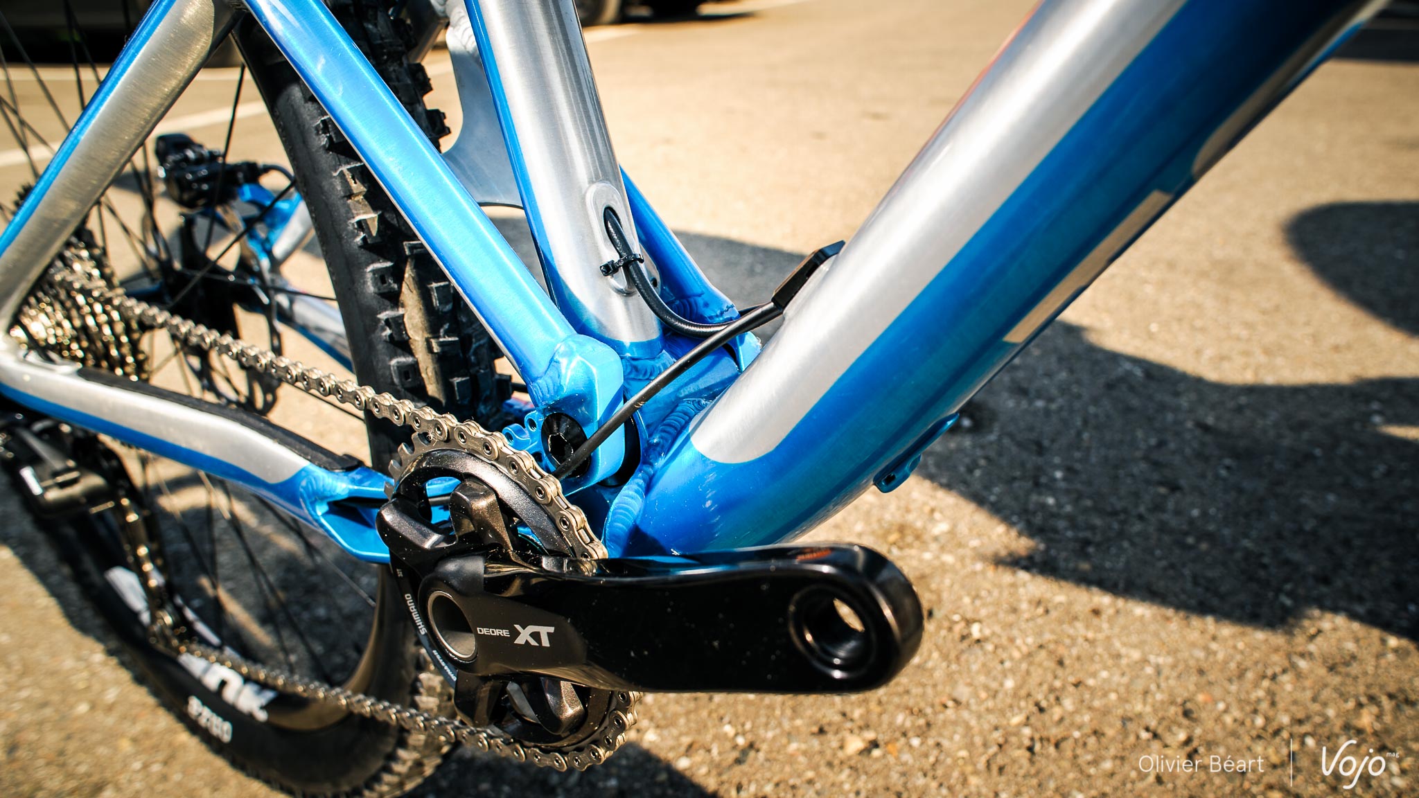 Après 16 mois de palabres, 25 sondages, 15 000 commentaires et 5 prototypes, voici le résultat : un trailbike en 27,5″, 130mm de débattement arrière et de 130 à 160mm pour l’avant. Au niveau de la géométrie, les choix des bikers se sont portés sur un vélo assez agressif, avec un angle de direction assez couché (66,5° avec fourche en 140mm), un avant assez long (435mm de reach en taille M) et des bases courtes (427,5mm).